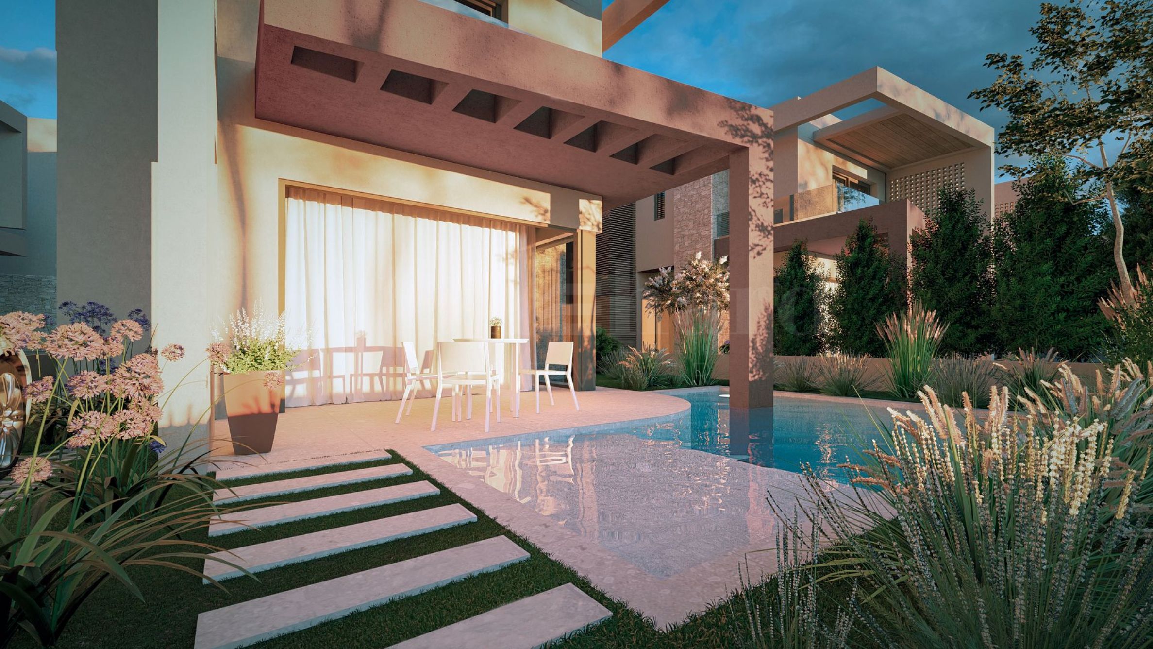 Locuințele din complex sunt o combinație perfectă de priveliști spre mare, distribuții funcționale și soluții interioare confortabile. În funcție de nivelul la care se află apartamentul, acesta dispune de verandă sau terase spațioase, unde puteți savura zilele însorite și adierea ușoară a brizei marine. Ferestrele mari contribuie la senzația de spațiu și libertate, iar băile individuale pentru fiecare dormitor garantează intimitatea și liniștea tuturor locatarilor.