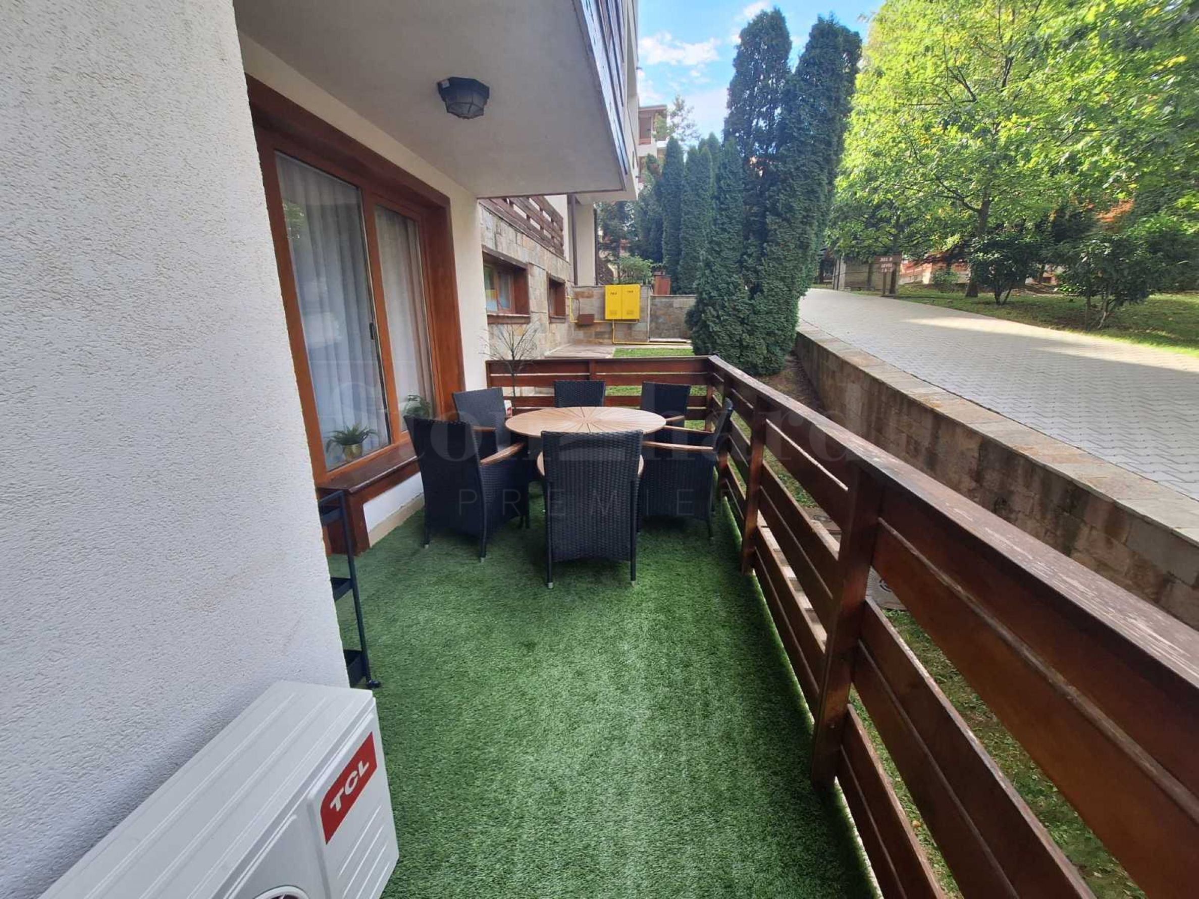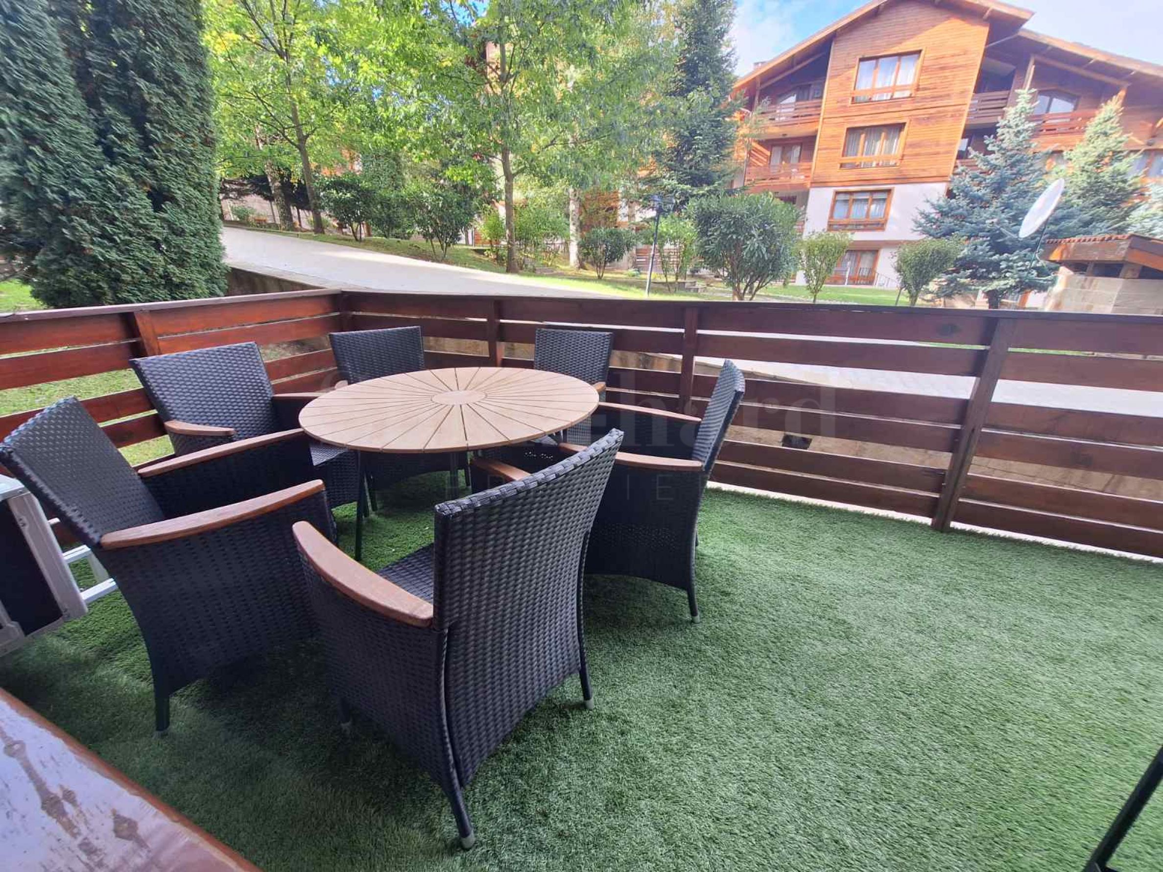 Apartamentul este situat într-o casă în spatele clădirii principale. Fiecare casă dispune de: zonă de masaj, saună, baie de aburi, depozit pentru echipament de schi, grătar mare cu șemineu, masă de biliard. Toate aceste facilități sunt destinate exclusiv proprietarilor. Aceștia se vor bucura de aer curat de munte și priveliști către Pirin. Interiorul fermecător oferă o senzație de confort casnic.