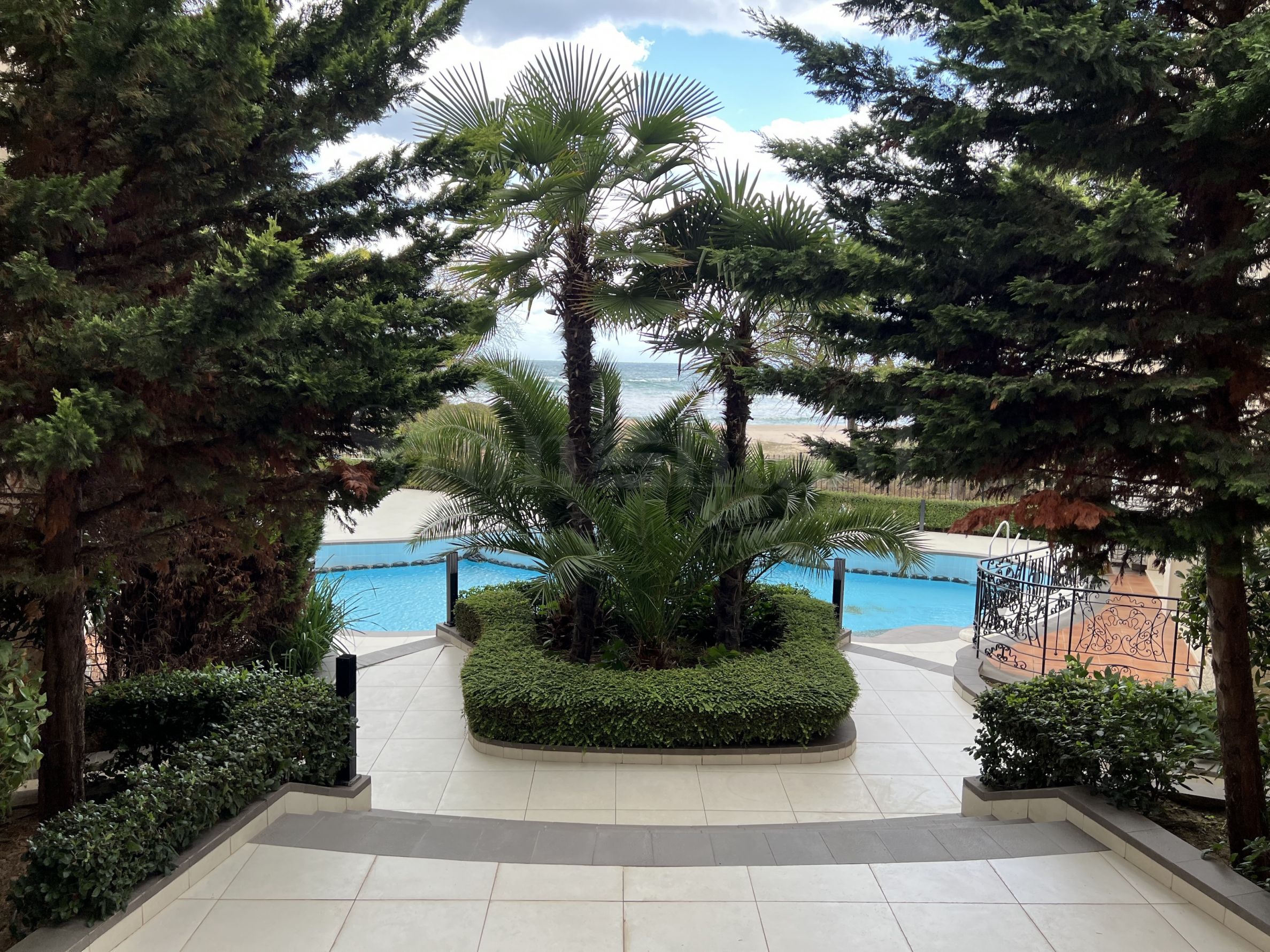 Apartamentul este situat la etajul al doilea al clădirii (primul etaj deasupra parterului) și dispune de un balcon spațios cu vedere la mare și la curtea interioară a complexului. Este complet mobilat cu mobilier de tip dulap realizat la comandă și mobilier independent de la mărci renumite. Electrocasnicele sunt în principal de la prestigioasa marcă Bosch - mașină de spălat, mașină de spălat vase, cuptor, frigider încorporat cu un compartiment mare separat. Pe balcon există mobilier din ratan - o măsuță de cafea și scaune, precum și o copertină pentru protecție împotriva soarelui și a ploii, care poate fi extinsă și retrasă cu o manivelă.