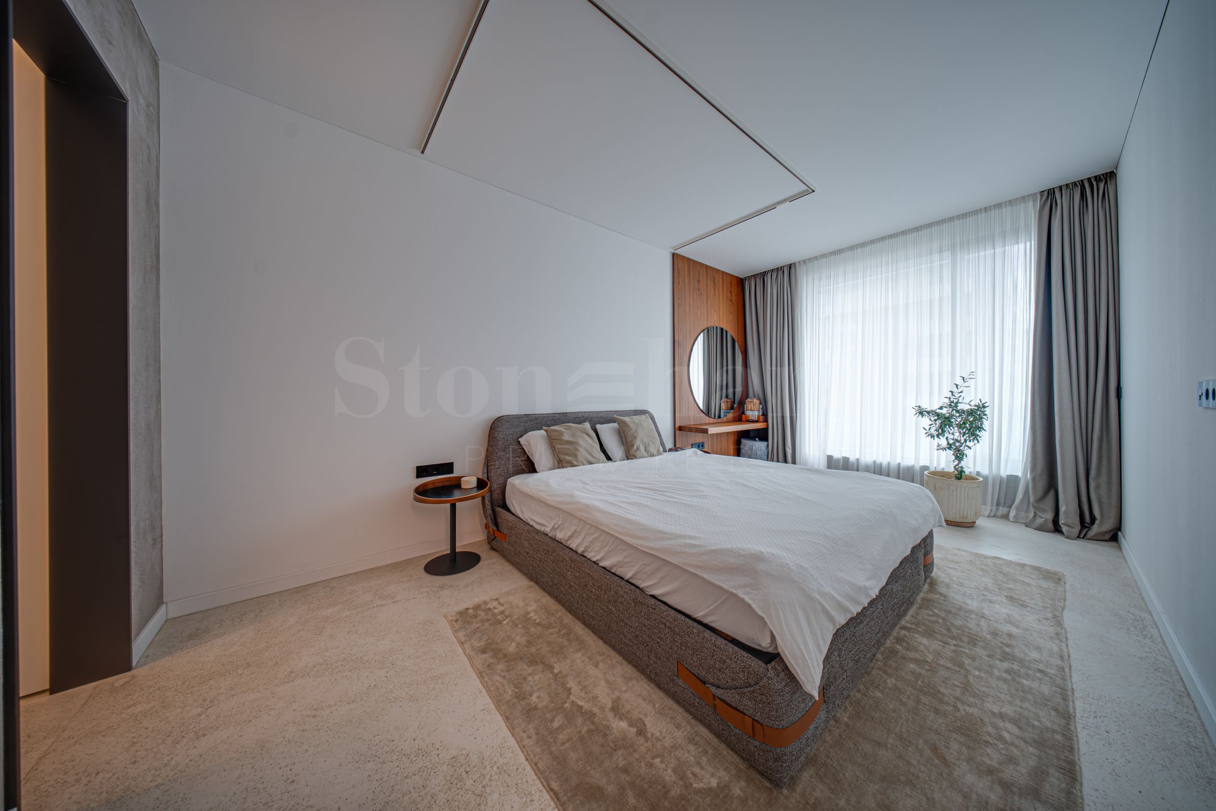 Mobilierul de dulap este realizat conform unui proiect individual, iar pereții sunt căptușiți cu materiale naturale - pentru că adevăratul lux nu strălucește, ci se simte.