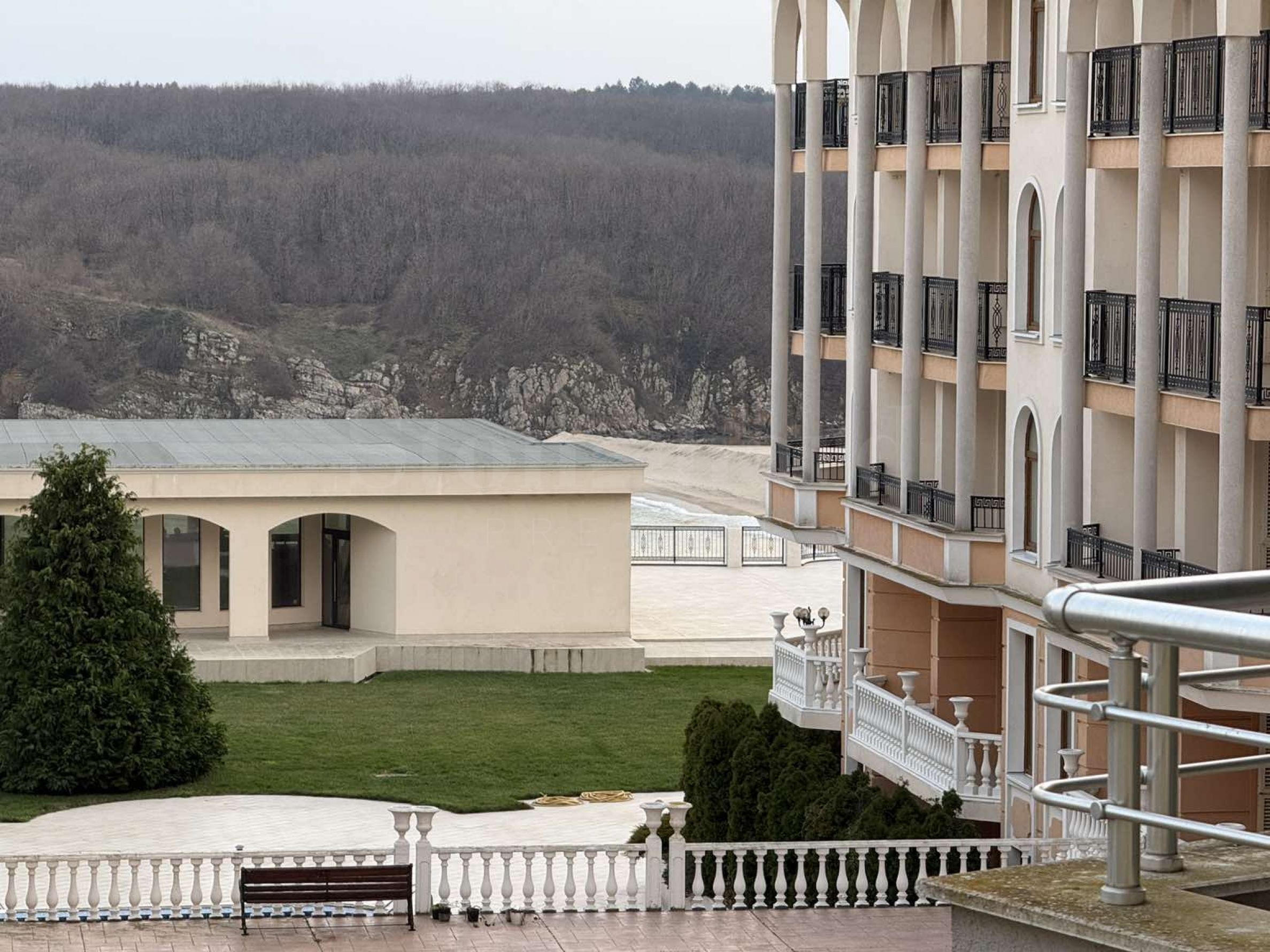 Proprietatea are o suprafață totală de 57,70 mp, situată la etajul 3, cu vedere spre piscină și mare.