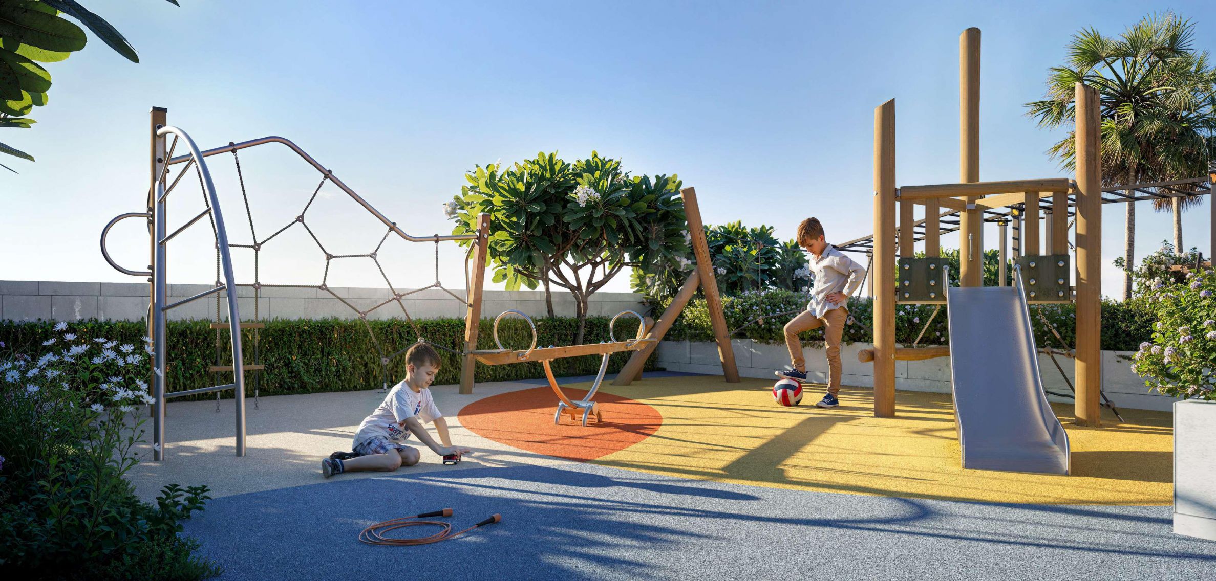 În imediata apropiere se găsește tot ce este necesar pentru o viață de zi cu zi fără probleme – supermarketuri, o varietate de magazine, cafenele și restaurante confortabile, precum și grădiniță, școală și universitate. Downtown Dubai este la doar aproximativ 20 de minute cu mașina, iar aeroportul internațional este, de asemenea, situat la o distanță convenabilă.