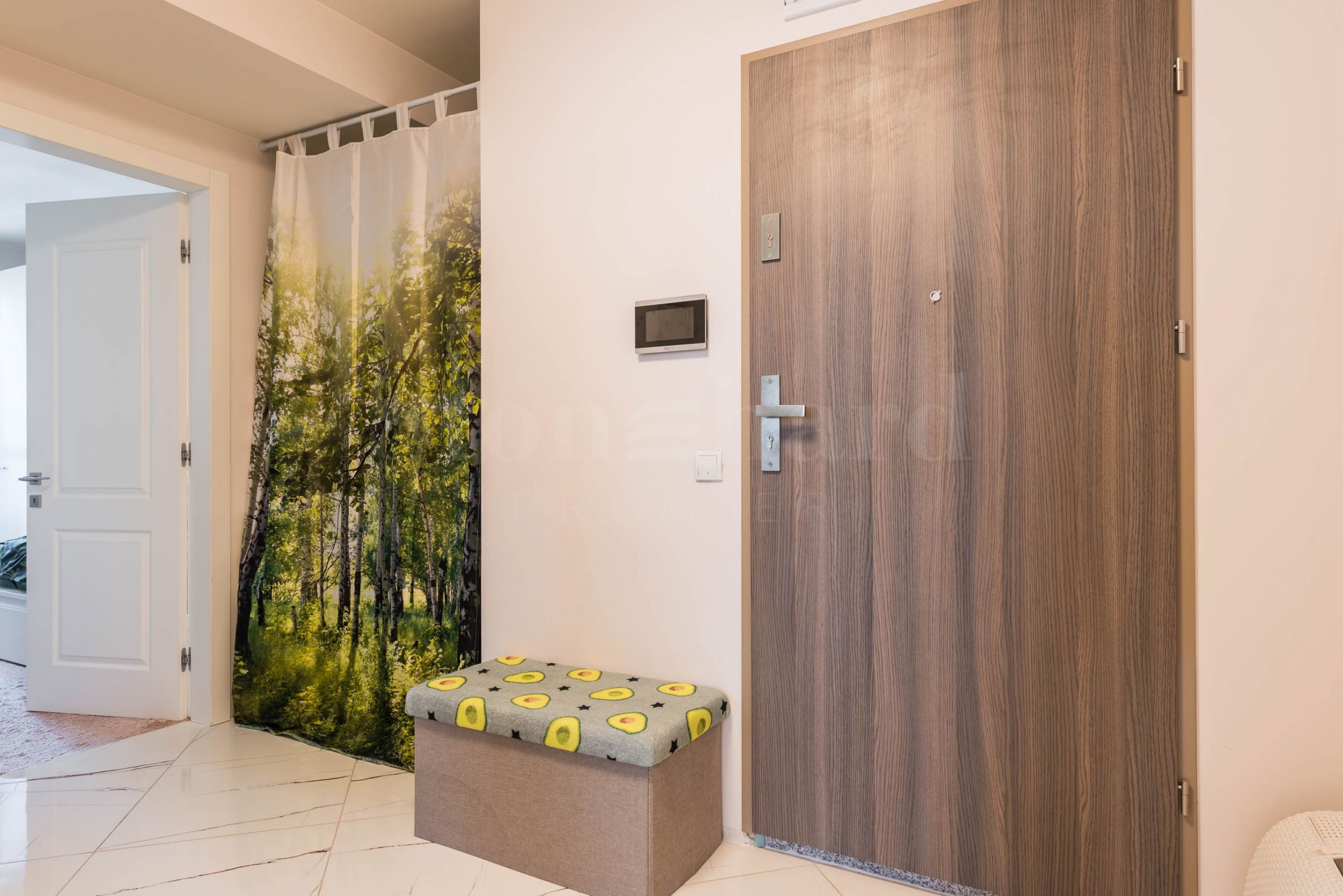 Apartamentul dispune de o debara cu suprafața de 3 mp. Este complet mobilat și echipat cu mobilă și aparate de înaltă clasă, gata de mutare fără investiții suplimentare.