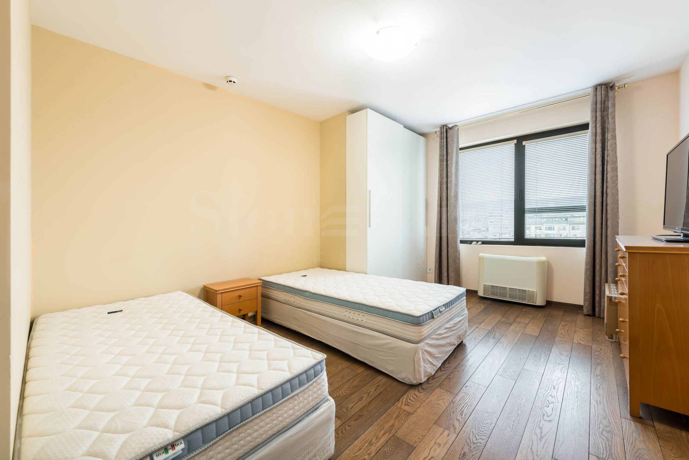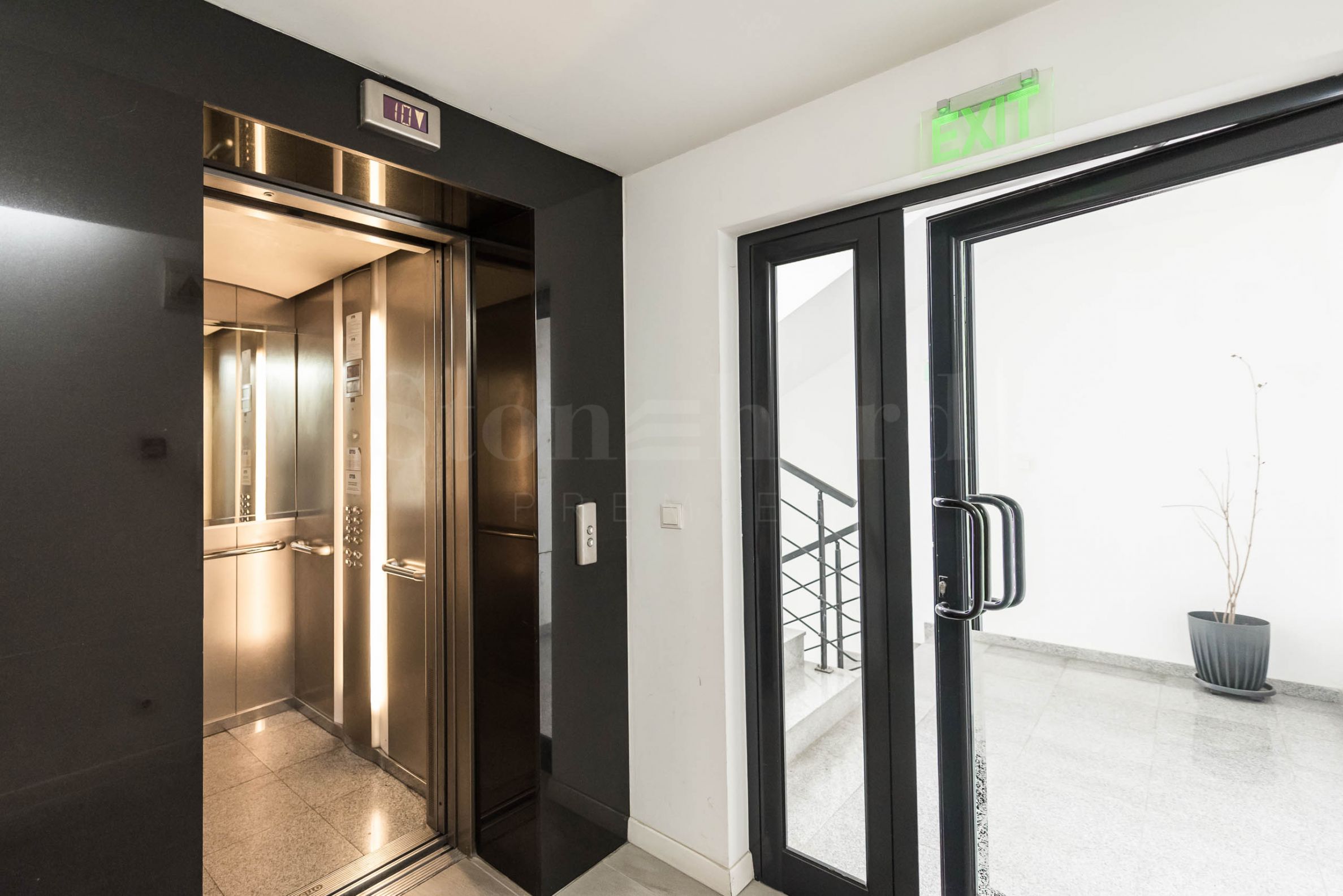 Proprietarul deține un loc de parcare subteran la nivelul minus doi, cu o înălțime mare (6 m), iar prin montarea unei platforme ridicătoare există posibilitatea de a parca două autovehicule. Prețul apartamentului este de 900 000 euro (1 760 247 BGN), dar există posibilitatea achiziționării suplimentare a locului de parcare subteran la prețul de 50 000 euro (97 792 BGN).