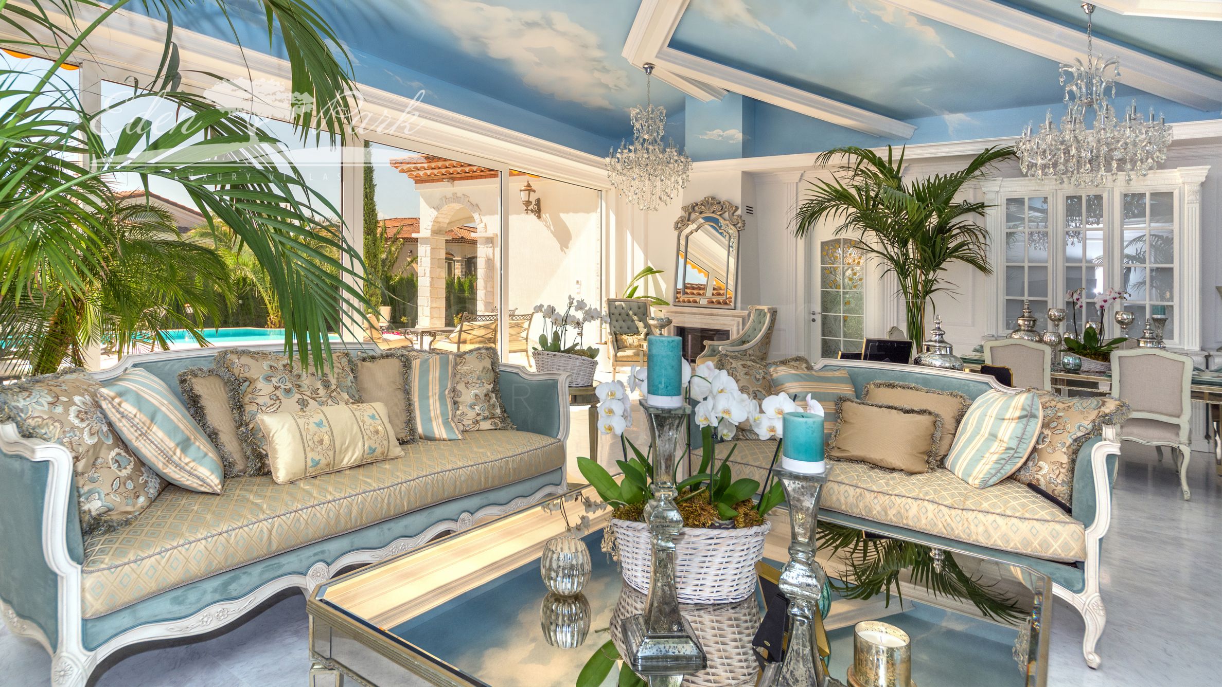 Vila este mobilată boutique cu mobilier realizat individual, vitralii artistice și fresce, iar interiorul este conceput cu materiale naturale de înaltă calitate și accente elegante de design. Rezultatul este o casă rafinată, cu caracter, care combină confortul, stilul și prestigiul.