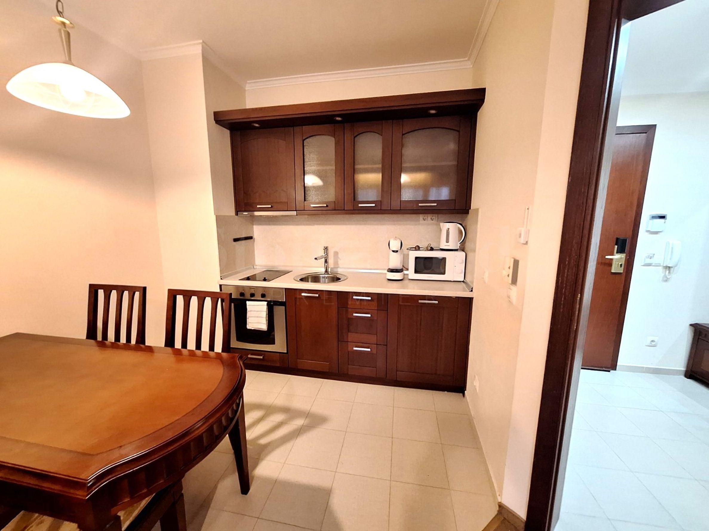 • Bucătărie cu chiuvetă, aragaz, frigider, cuptor cu microunde și hotă;