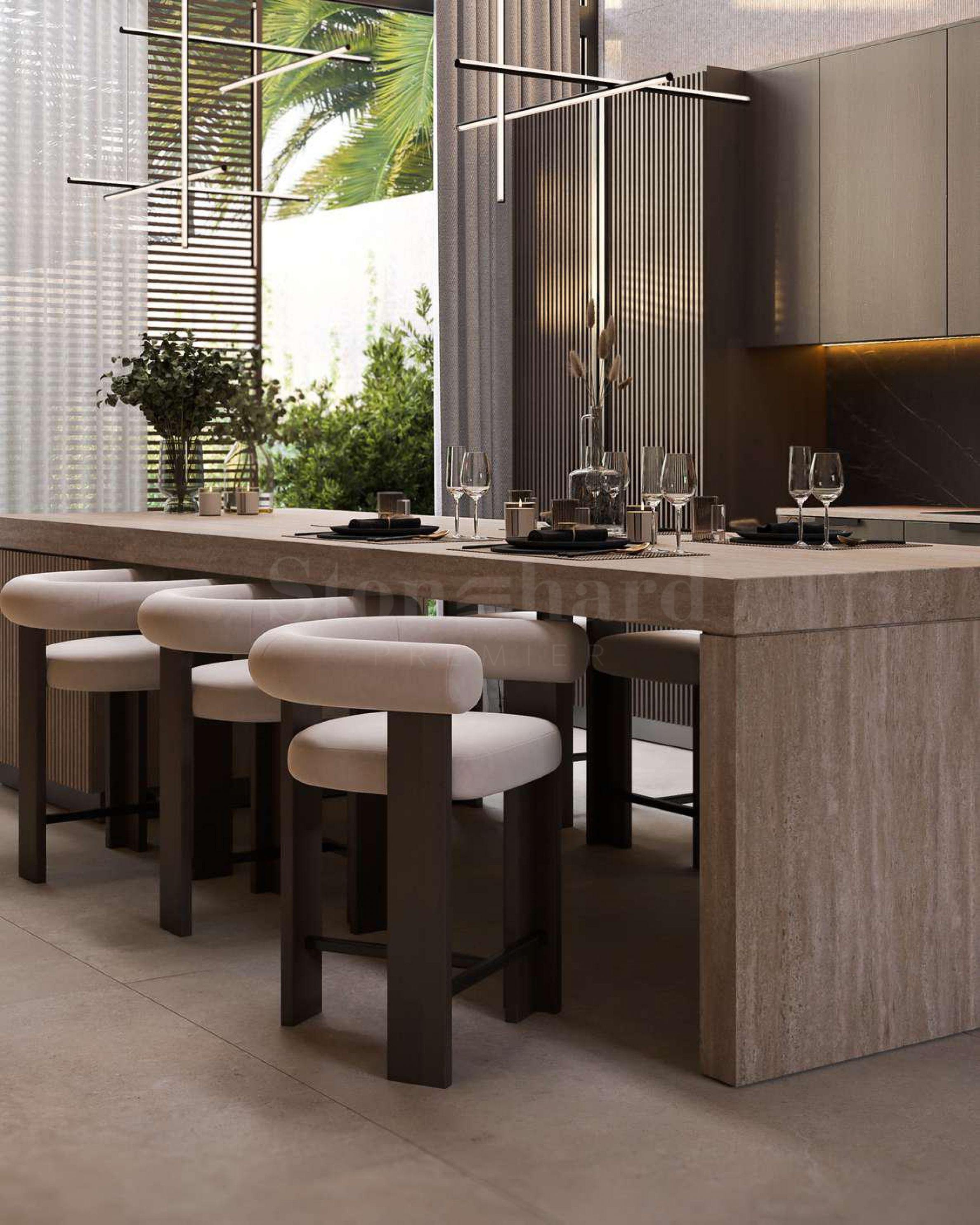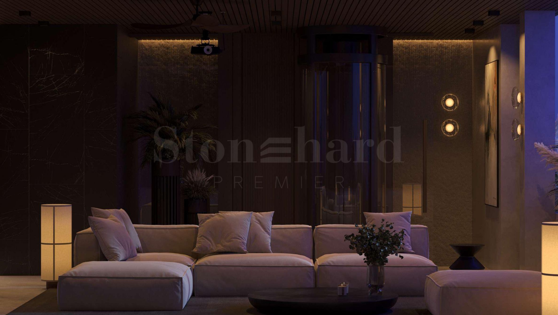 Toate reședințele din complex sunt oferite complet mobilate și finisate „la cheie”, fiecare element – de la pardoseli până la accentele decorative finale – fiind ales cu atenție la detalii. Sunt folosite materiale de înaltă calitate, precum granit, lemn natural și terazzo, iar pereții sunt fin prelucrați și completați cu inserții decorative din lemn și piatră, care subliniază estetica modernă.