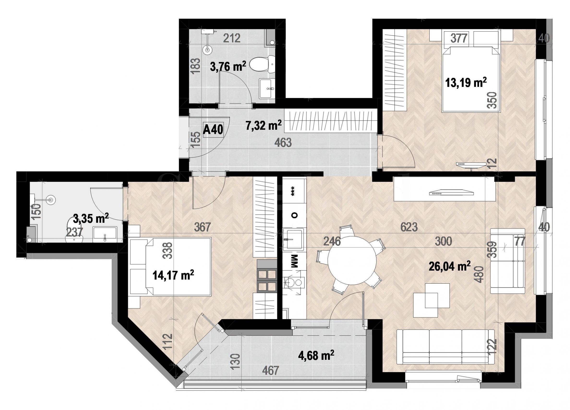 Zone de locuit: 99.31 m²