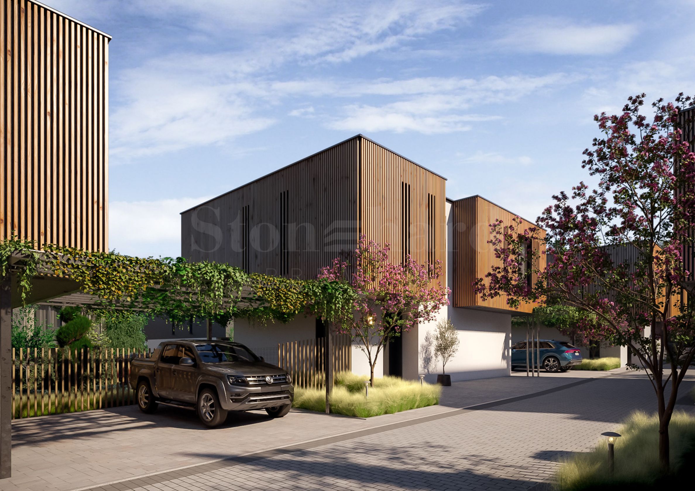 Casele înșiruite sunt concepute cu o zonă de zi extinsă la primul nivel și trei dormitoare confortabile la etaj, completate de băi și dressinguri – o distribuție optimă pentru familia modernă.