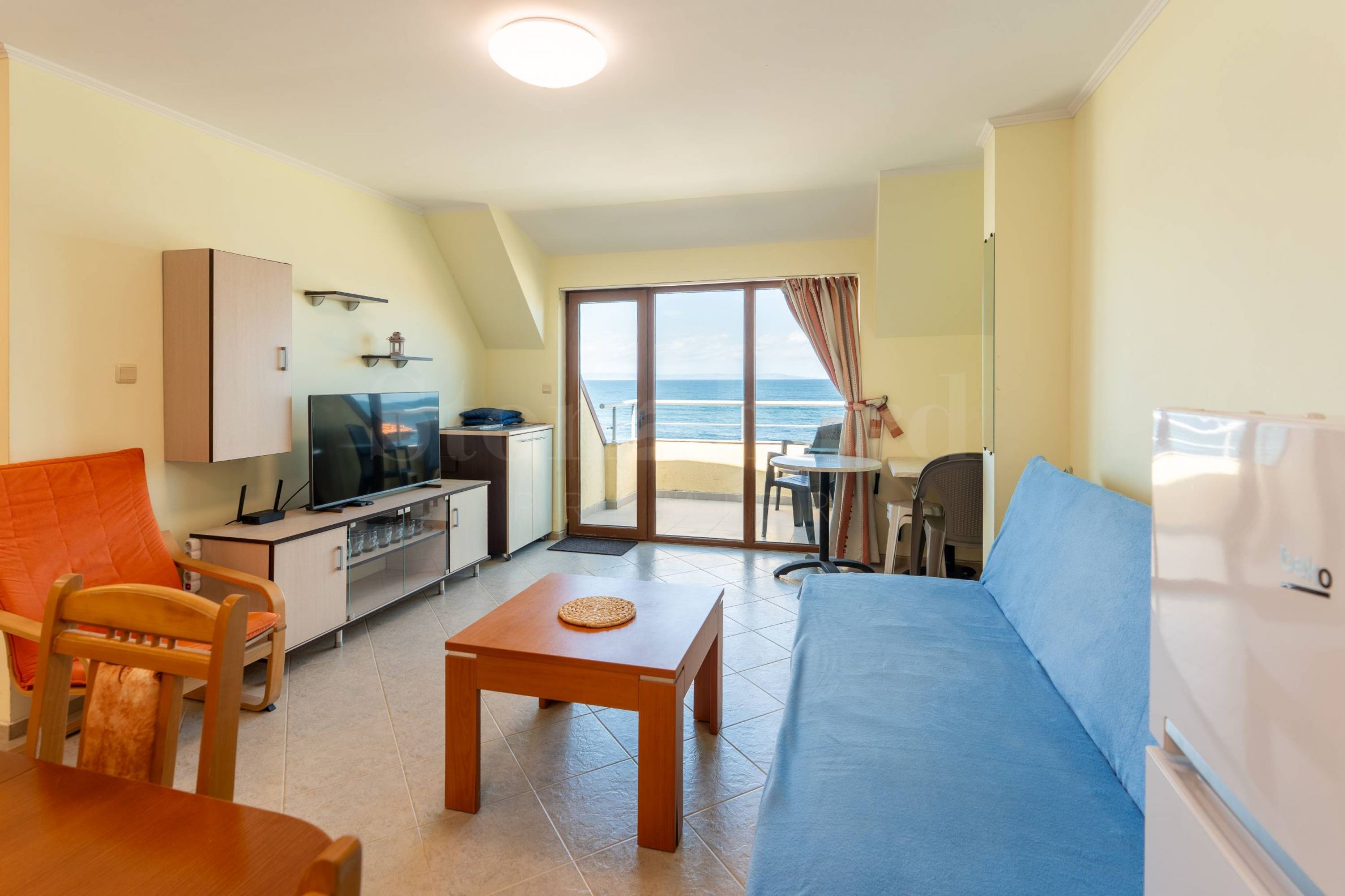 Vă prezentăm spre vânzare un apartament cu două camere într-un complex frumos de tip închis, situat pe prima linie la mare în m-t Budzhaka, Sozopol.