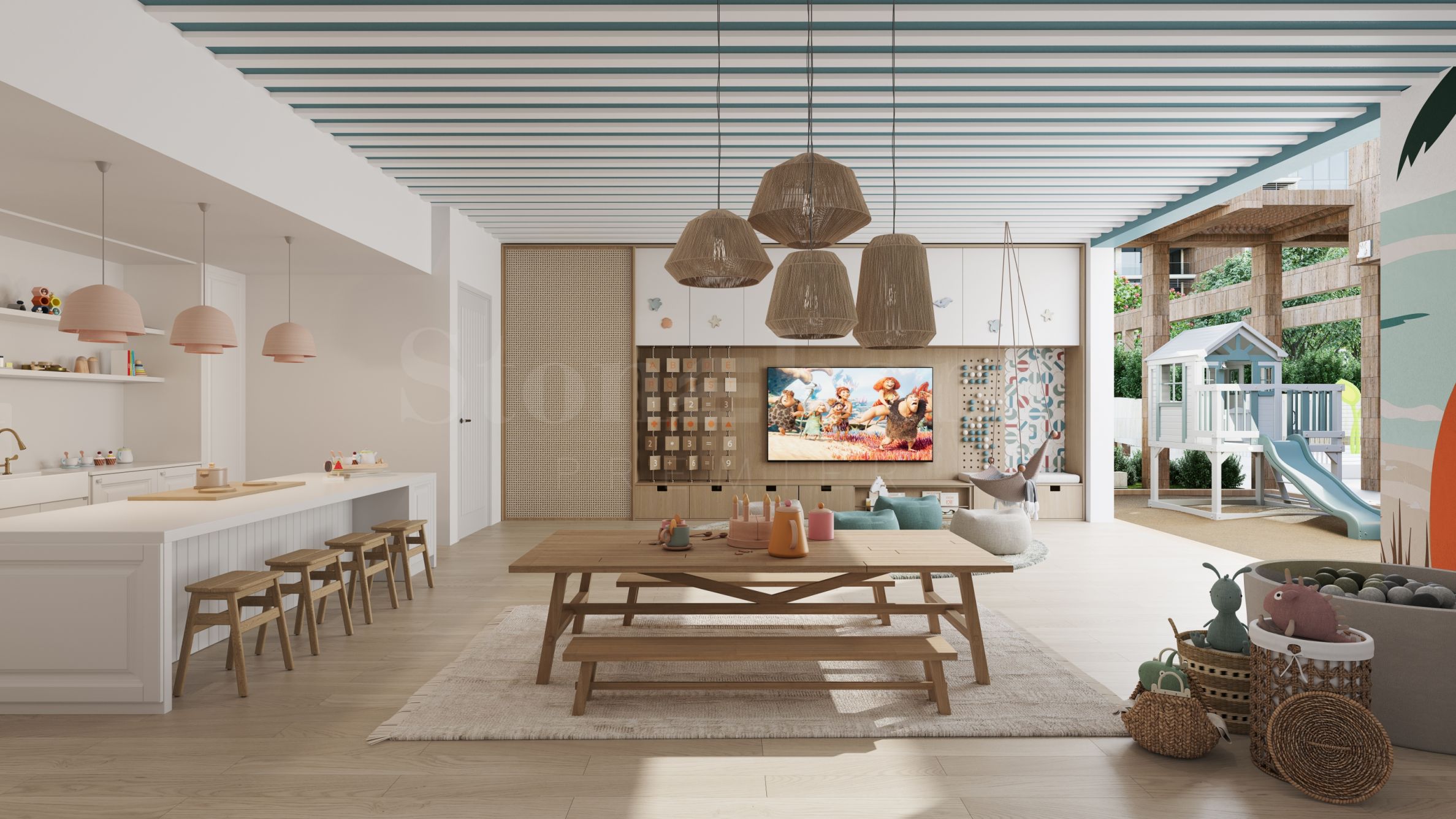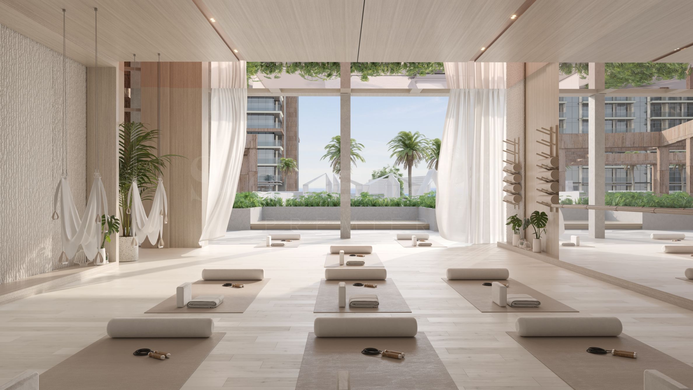 Viața în Playa del Sol este completată de o selecție de facilități create pentru a sublinia senzația unui stil de viață de vacanță la malul mării. Piscina mare cu vedere panoramică la mare și zonele adiacente de relaxare devin o continuare naturală a atmosferei de plajă – un loc pentru odihnă la soare și momente împărtășite cu cei dragi. Sunt disponibile o sală de fitness modern echipată, un studio de yoga și un teren de squash, care oferă oportunități pentru un stil de viață activ. Sunt prevăzute și zone de jocuri și divertisment pentru toate vârstele, precum și spații pentru grătar și colțuri deschise pentru luat masa, create pentru întâlniri plăcute.