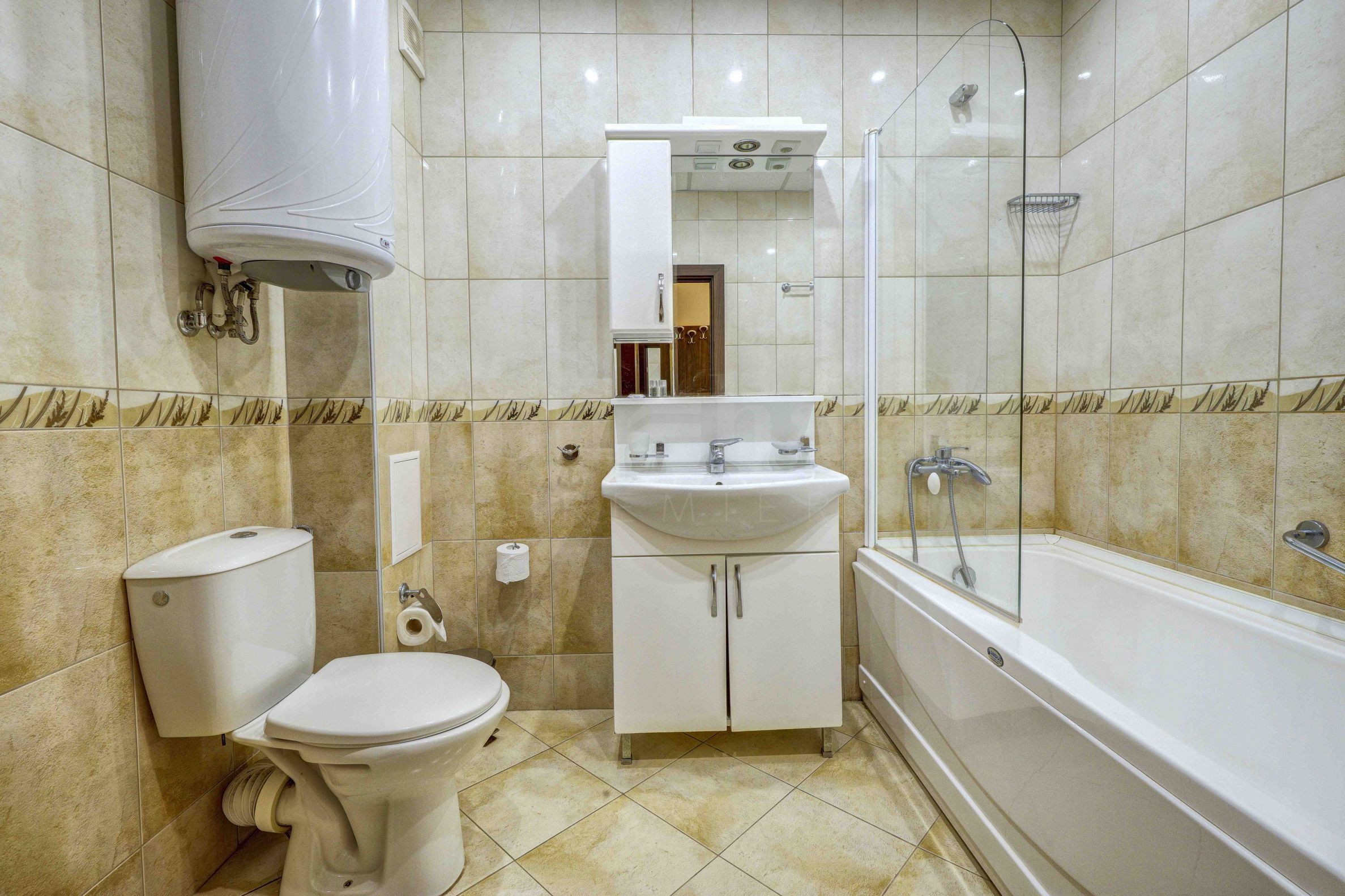 Proprietatea oferă o baie echipată cu o cadă mare pentru un confort sporit, precum și un debara pentru bagaje suplimentare.