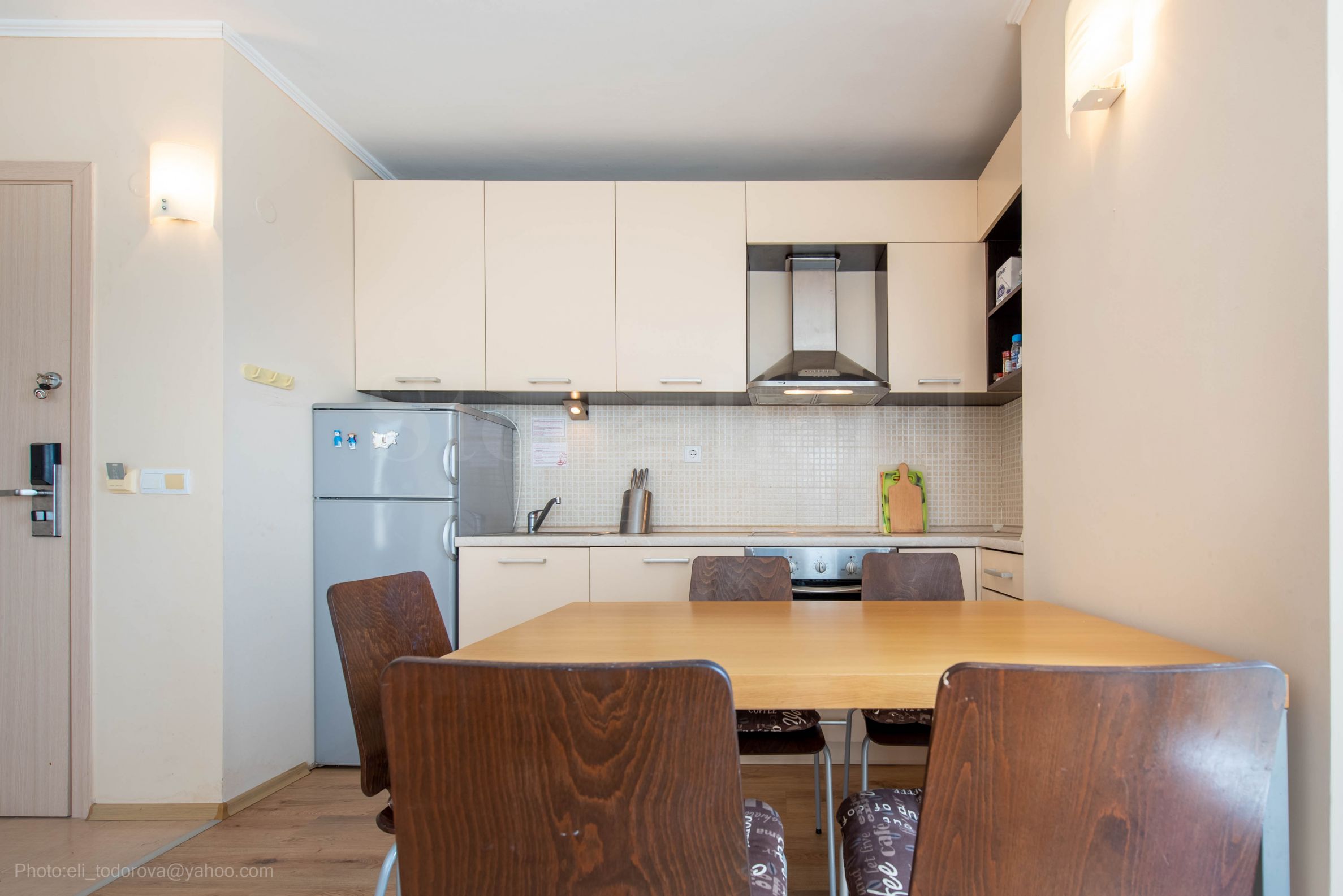 Locuința se află în complexul închis popular, situat lângă fâșia de nisip, pe prima linie de la mare.