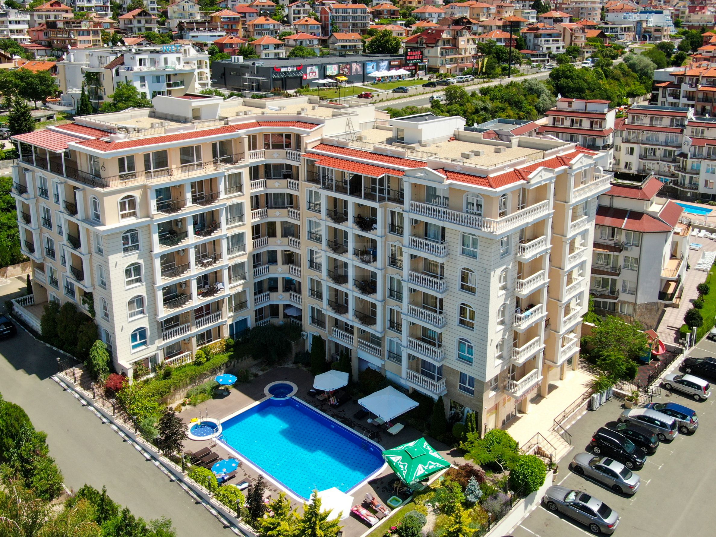 Complexul se află pe o stradă liniștită și calmă, cu o denivelare naturală, care permite o panoramă frumoasă către mare și dealurile Munților Stara Planina. Locația oferă acces facil și rapid către centrul stațiunii, precum și către portul de iahturi prestigios din Sveti Vlas - "Marina Dinevi".
