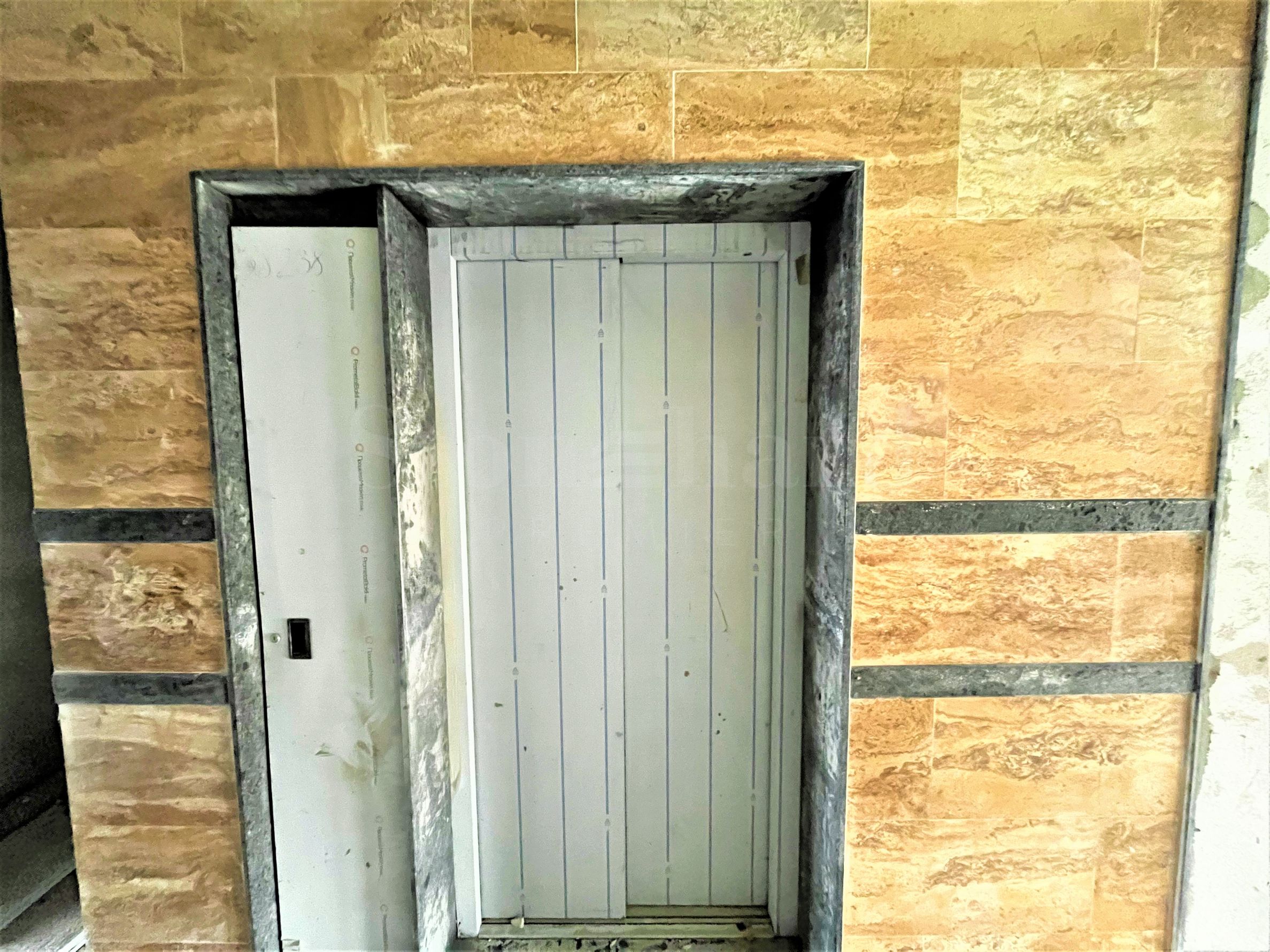 Общие части здания - с полной отделкой, стены - камень "Травертин" на первом этаже, остальные этажи - водоотталкивающая и устойчивая к УФ-излучению штукатурка "Тракон";