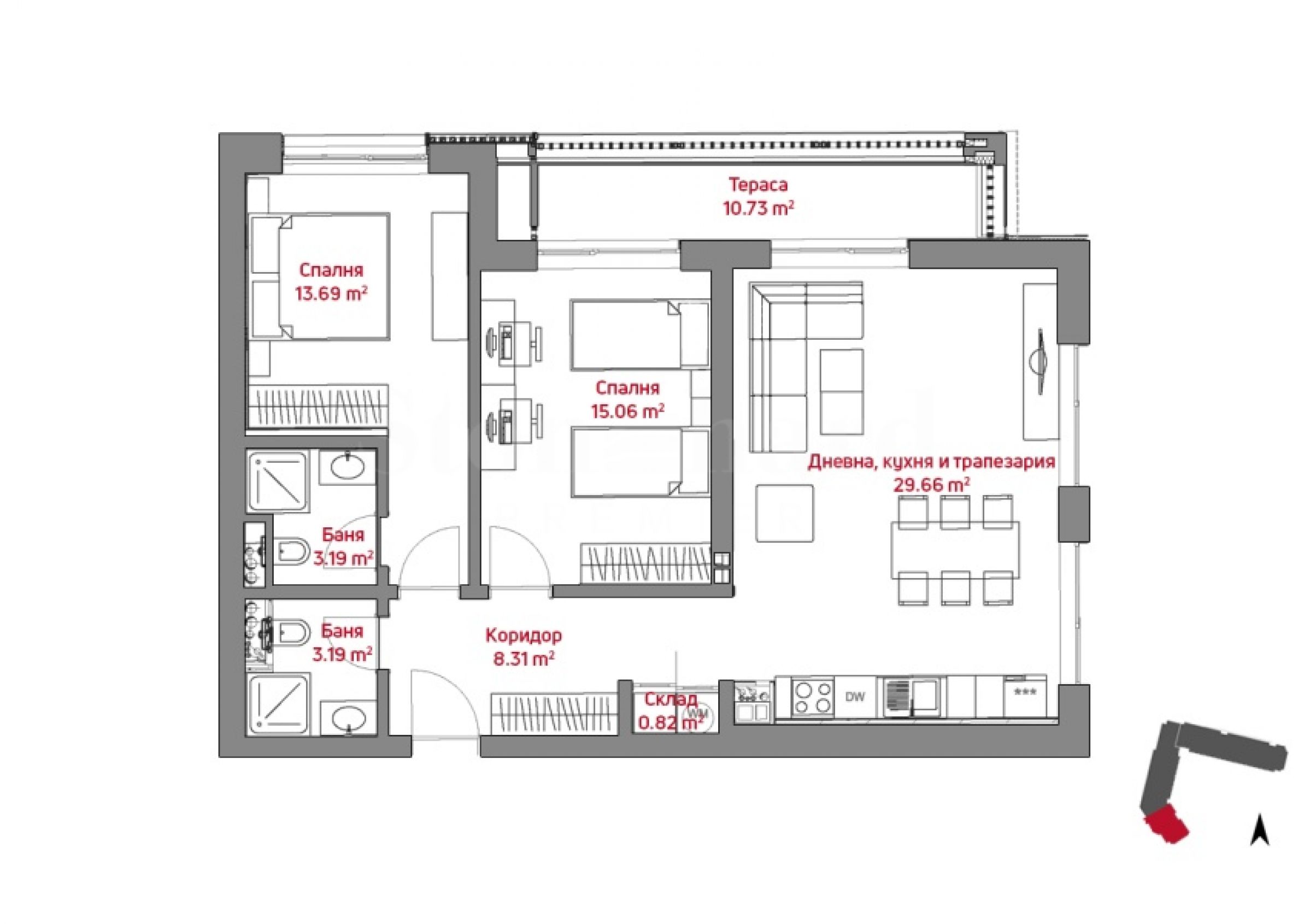 Недвижимость предлагается с высококачественной отделкой в соответствии с болгарскими стандартами.