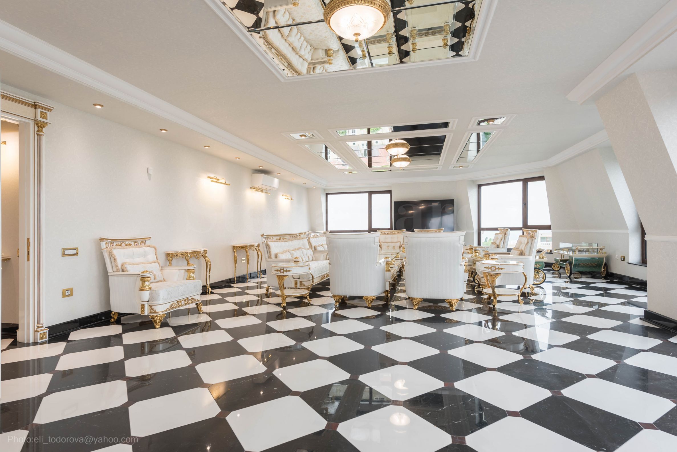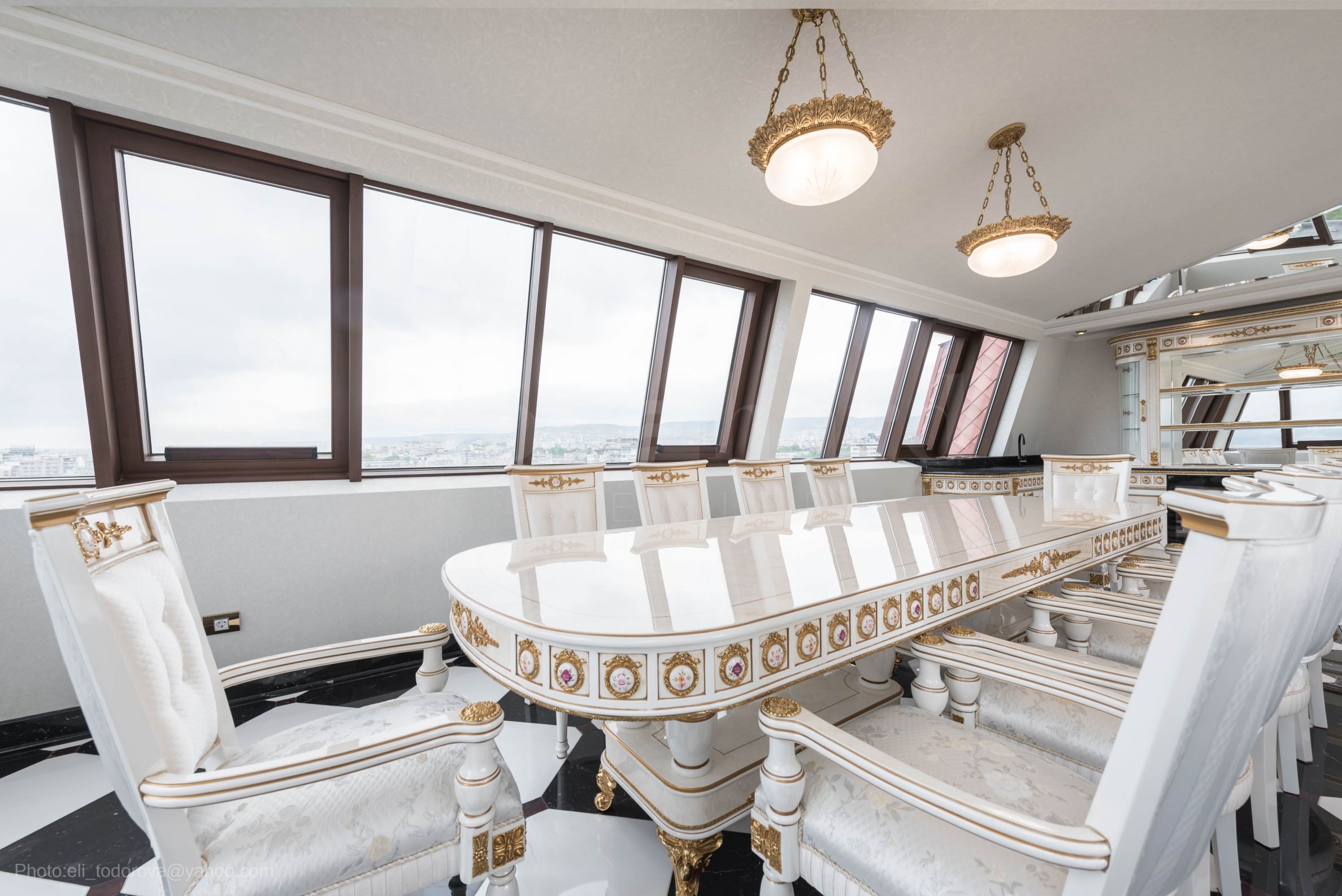 Интерьер элегантный, яркий и гармоничный, вдохновленный французской классикой, предлагающий невероятную «белую симфонию» с золотой отделкой мебели и стен, преобладающей во всем здании. Это эксклюзивная недвижимость с характером – настоящий аристократический ансамбль между историческим духом эпохи и современным миром.