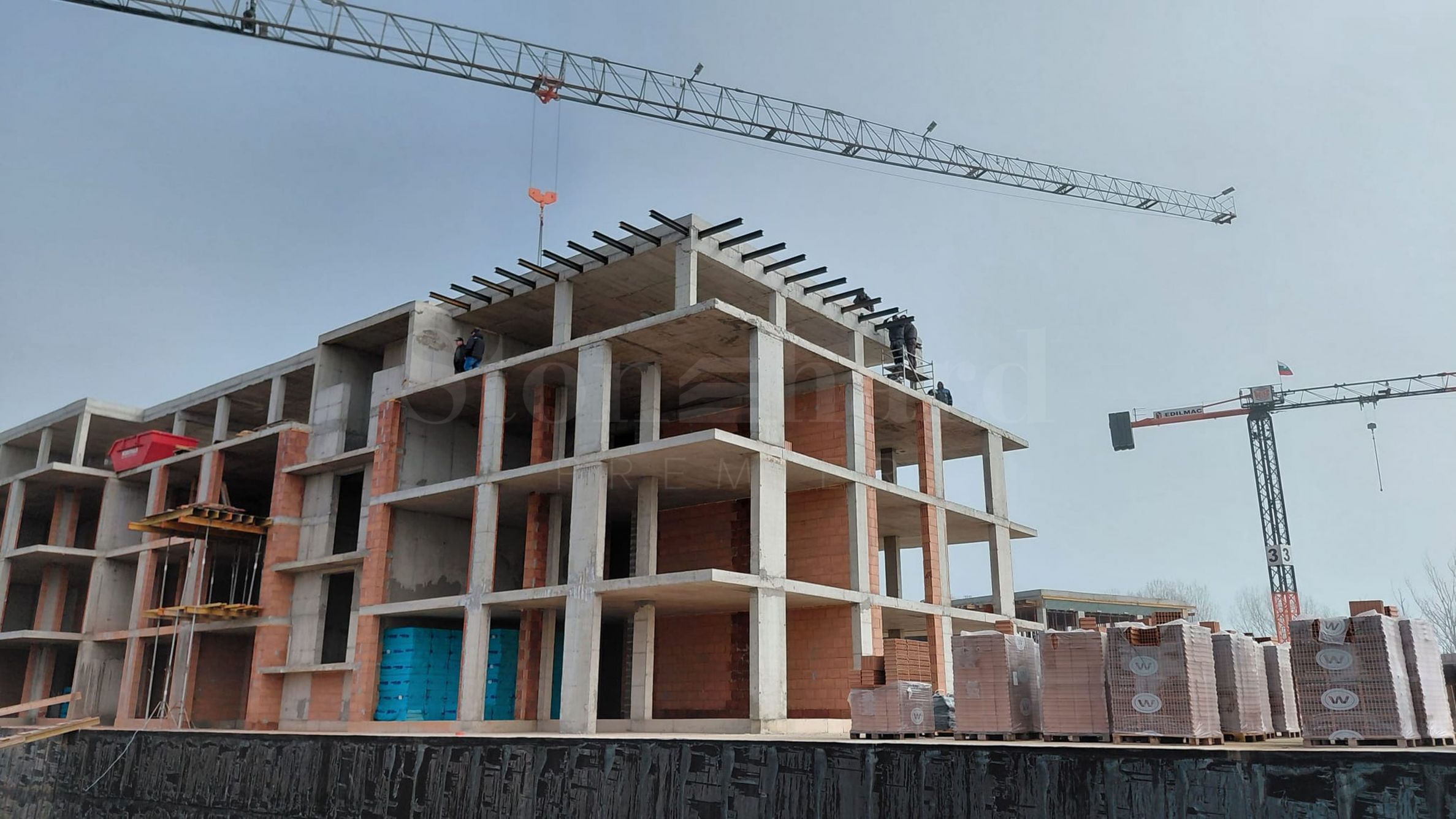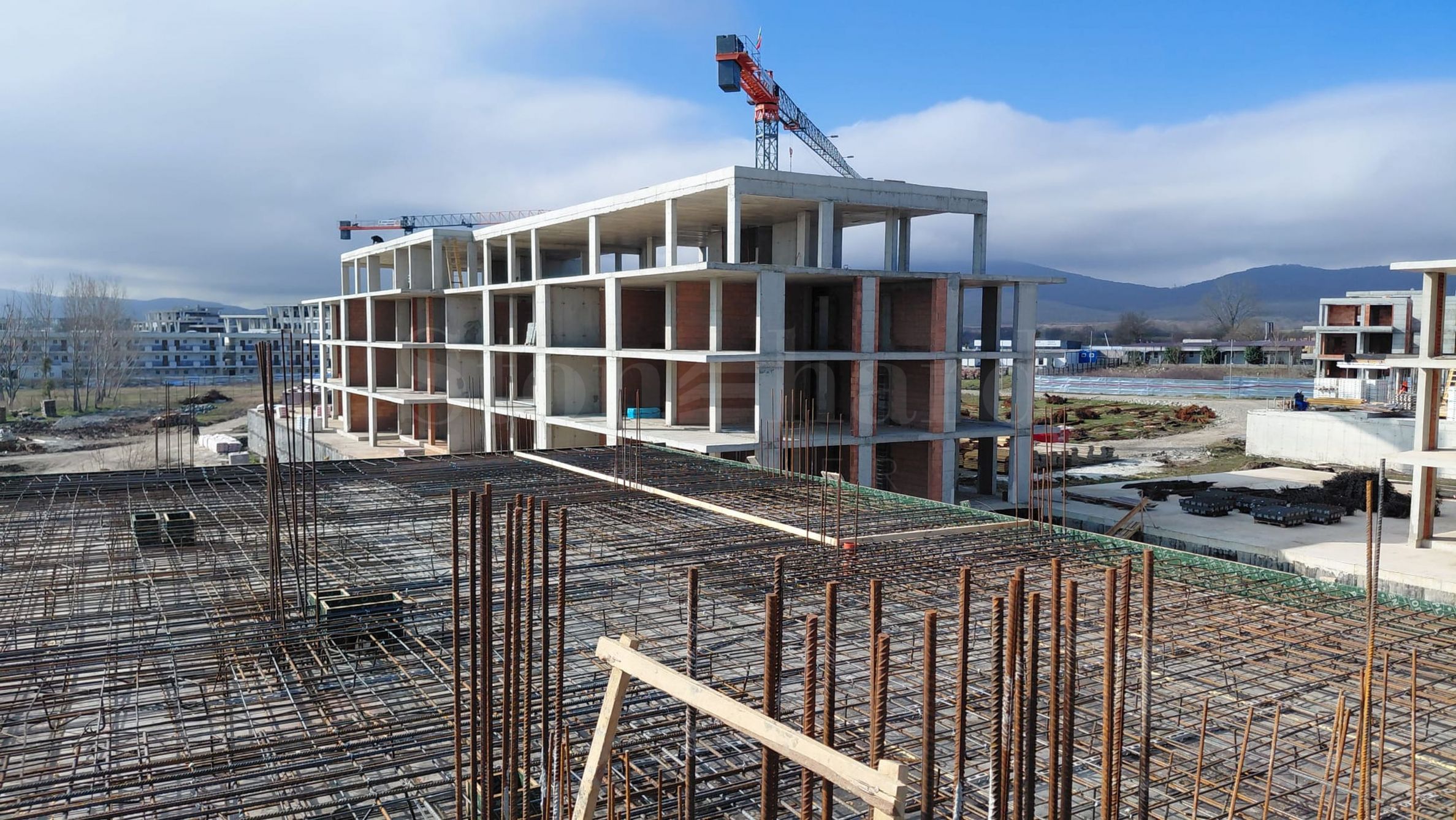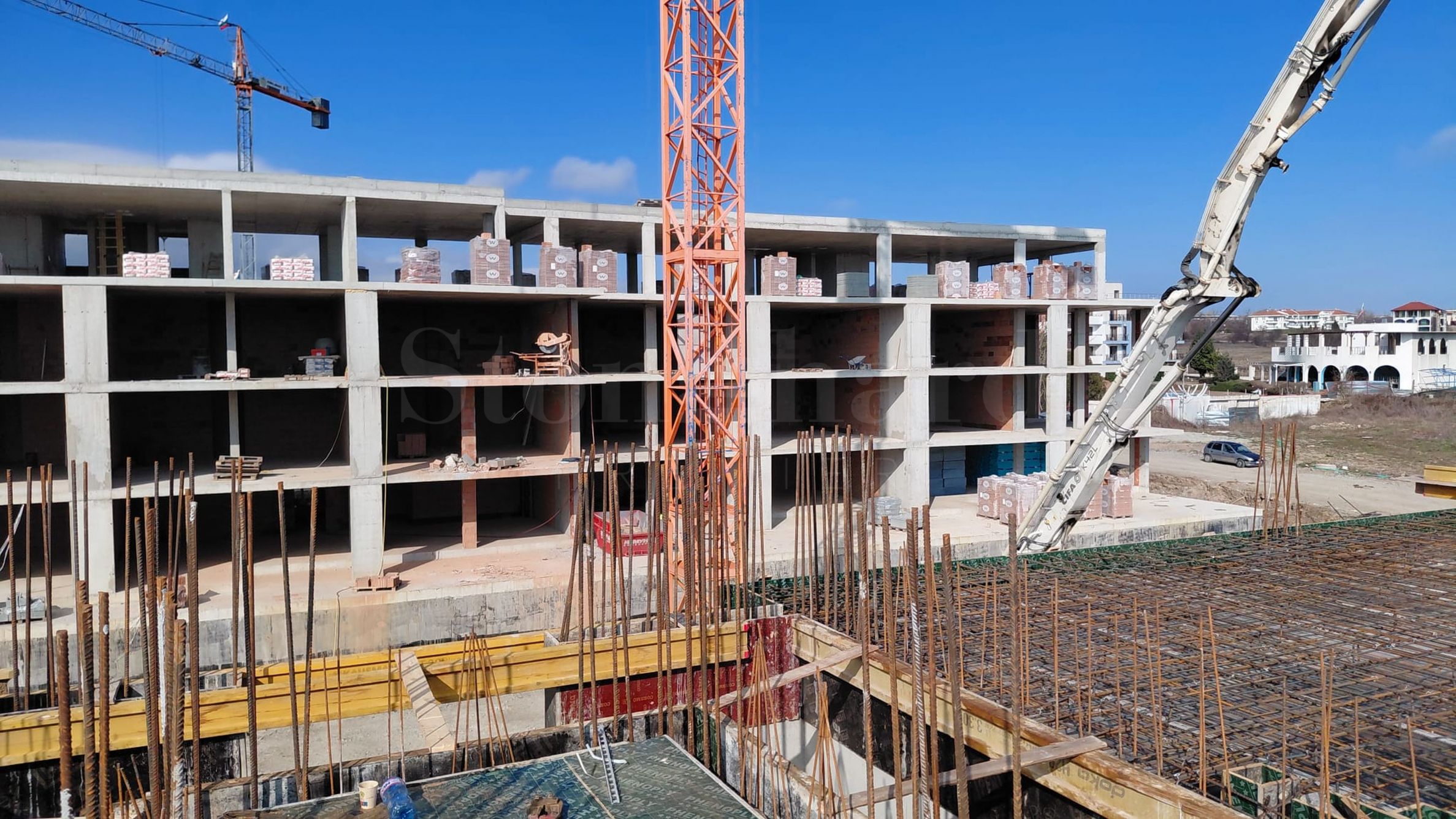 На четвертой линии берега, всего в 200 метрах по прямой от моря, спроектированы 5 зданий с бассейнами, каждое из которых имеет 4 этажа плюс террасы, а также квартиры меньшего размера — студии и двухкомнатные апартаменты, находящиеся в стадии завершения строительства в соответствии с болгарскими строительными стандартами, с возможностью меблировки.