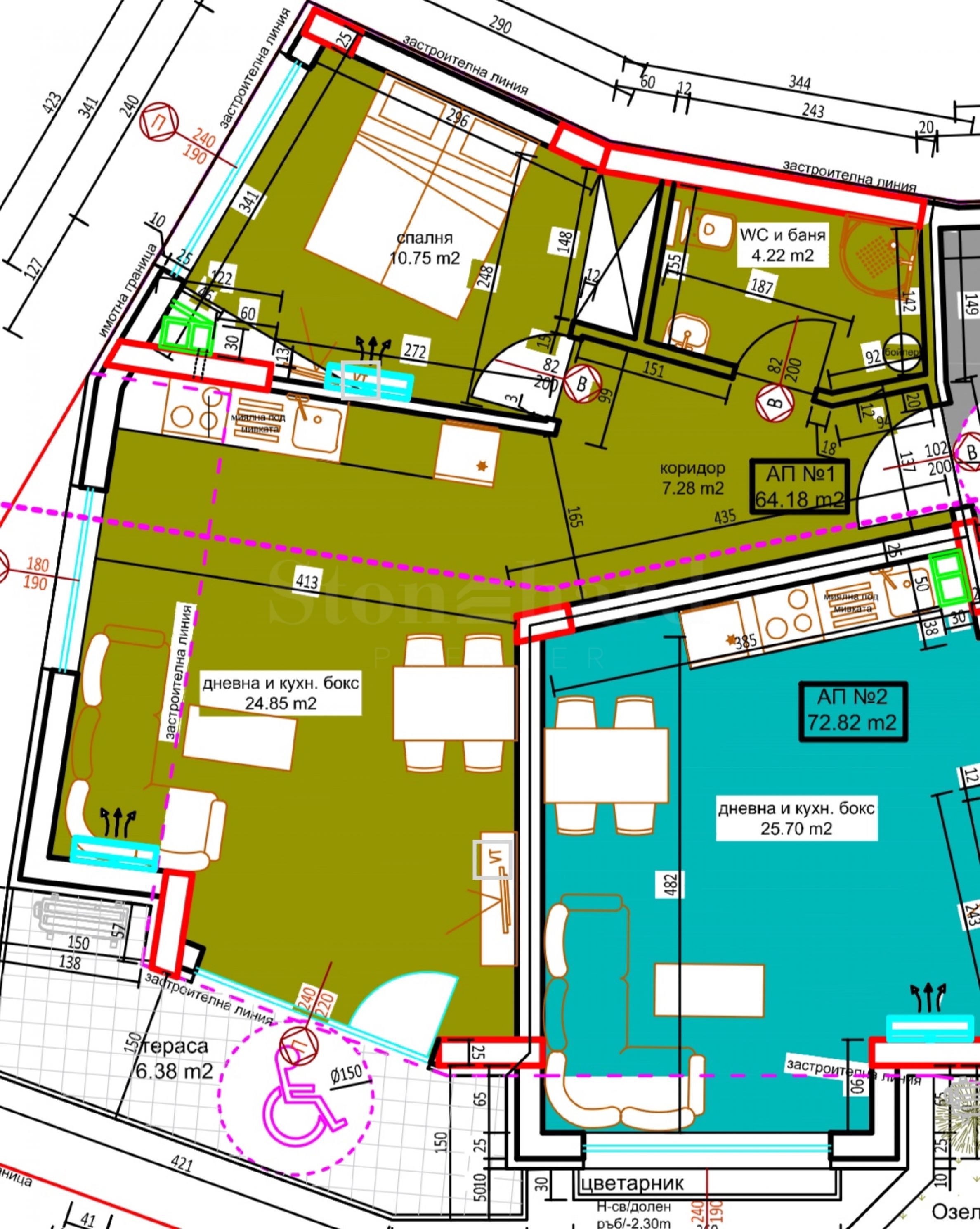 Двухкомнатная квартира в новом элегантном здании в центре Пловдива