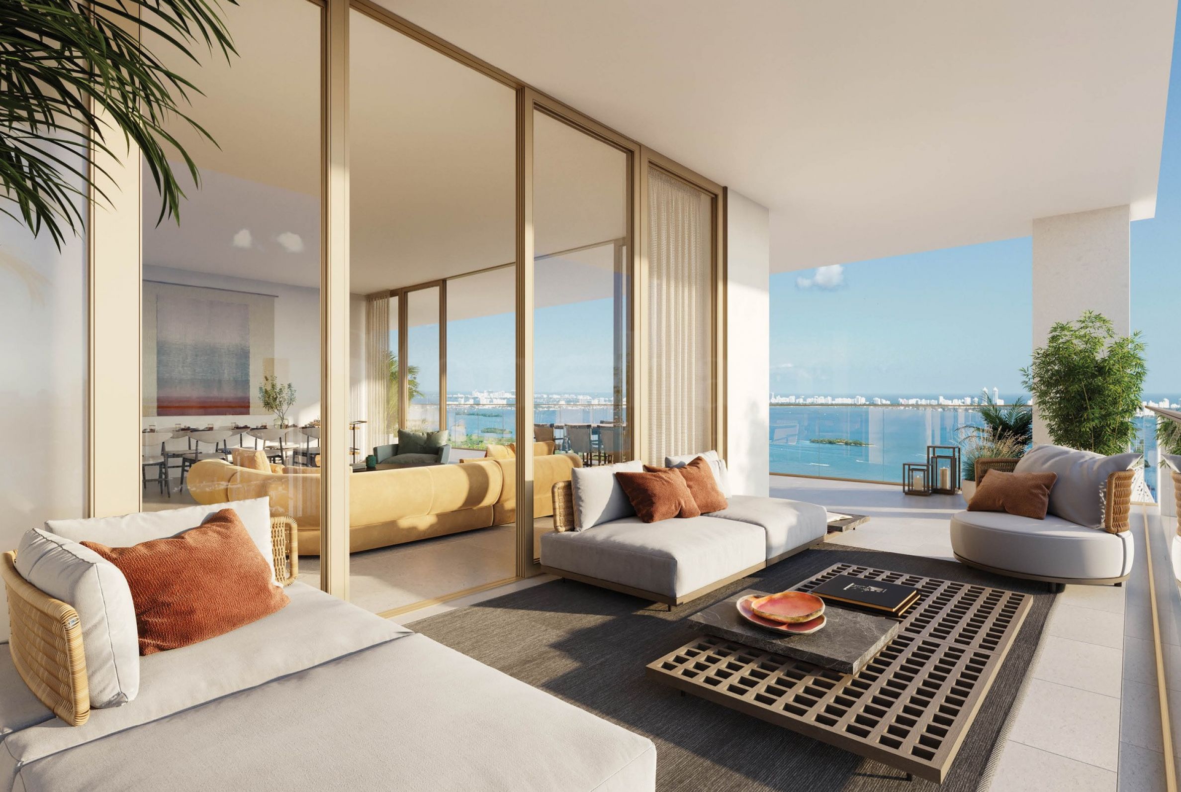 Четырехкомнатные квартиры с четырьмя ванными комнатами и туалетом. Доступ в квартиры осуществляется с помощью высокоскоростных частных или получастных лифтов, что обеспечивает прямой доступ и комфорт для жильцов. Во всех резиденциях высокие потолки — более 2,80 метра — и окна от пола до потолка, которые наполняют помещения светом и усиливают ощущение свободы и простора. Застекленные террасы площадью от 20 до 100 кв. м — идеальное место, где можно насладиться солнечной погодой и прекрасным видом на Майами, одновременно отдыхая в комфортной домашней обстановке.