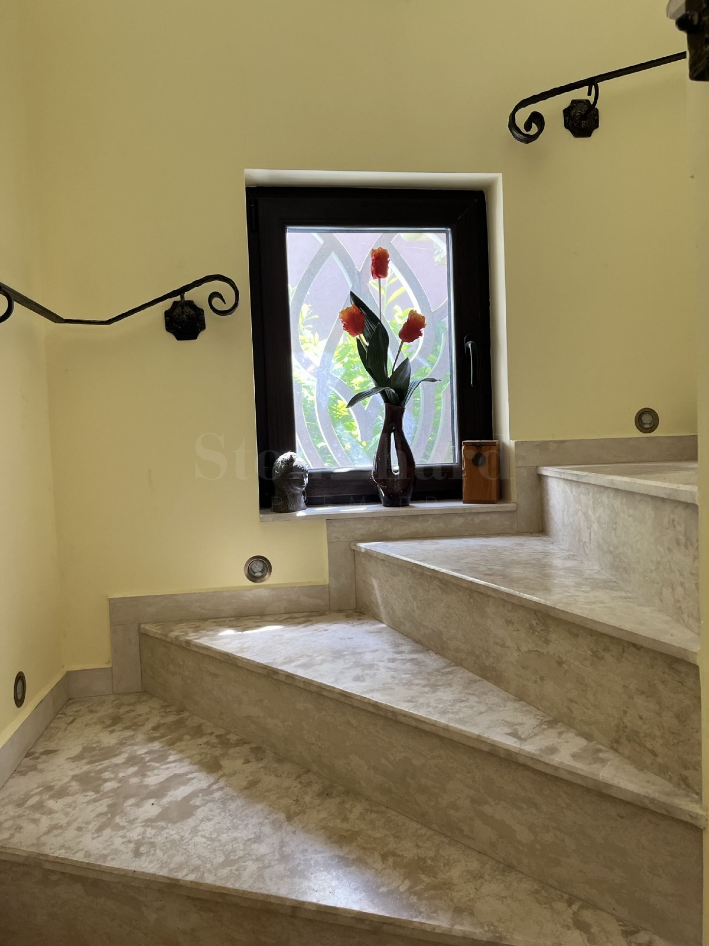 второй этаж: три спальни, две ванные комнаты с туалетами, террасы с прекрасным видом на море, горы и территорию комплекса. В собственности также имеется подвал площадью 48 кв. м, подходящий для различных целей.