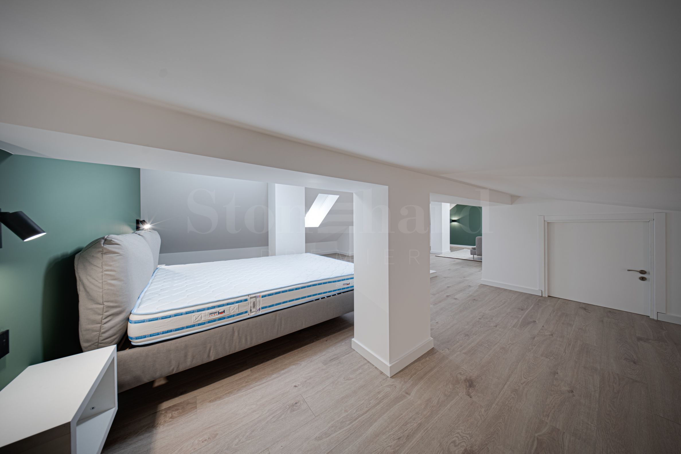 Второй уровень – хозяйская спальня с гардеробной и собственной ванной комнатой с туалетом, вторая спальня с двуспальной кроватью, гостевая спальня, кабинет (можно использовать как дополнительную спальню, есть раскладной диван), ванная комната с туалетом;