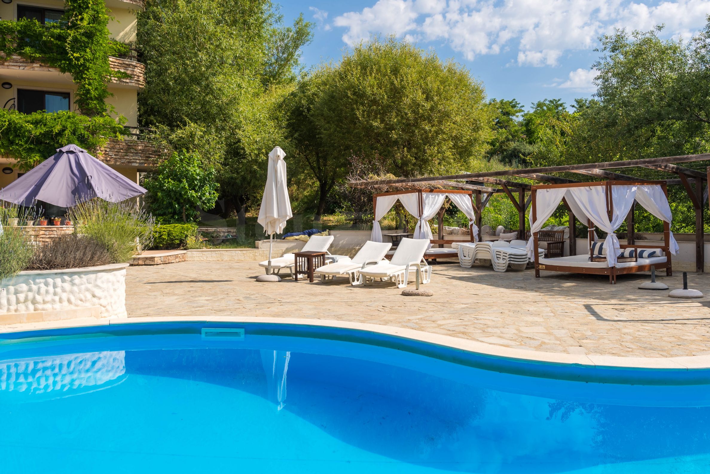 • частный открытый бассейн для отдыха в теплые дни;