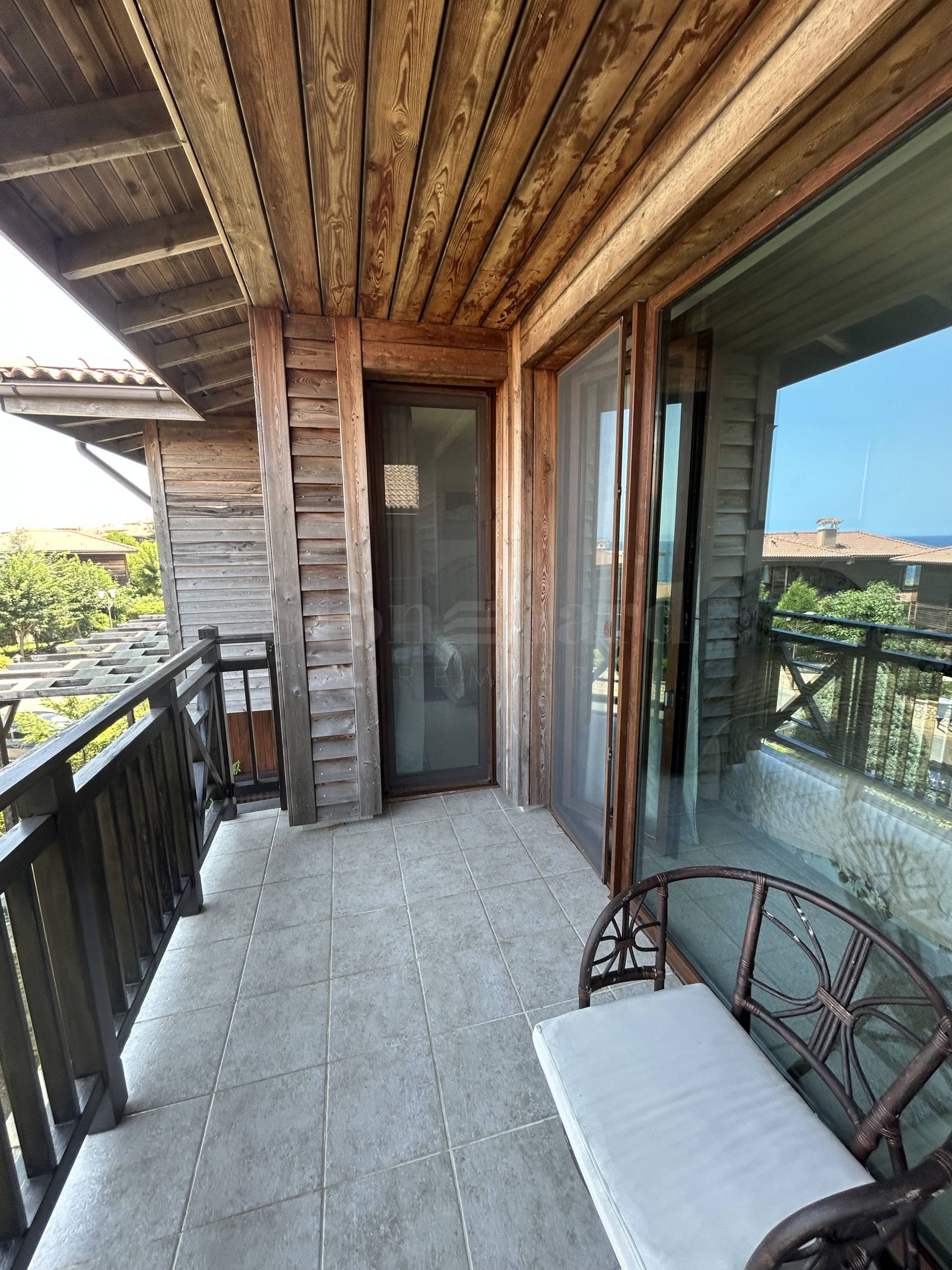 • второй этаж: коридор, две спальни, две ванные комнаты с туалетом, гардеробная и терраса с видом на море.