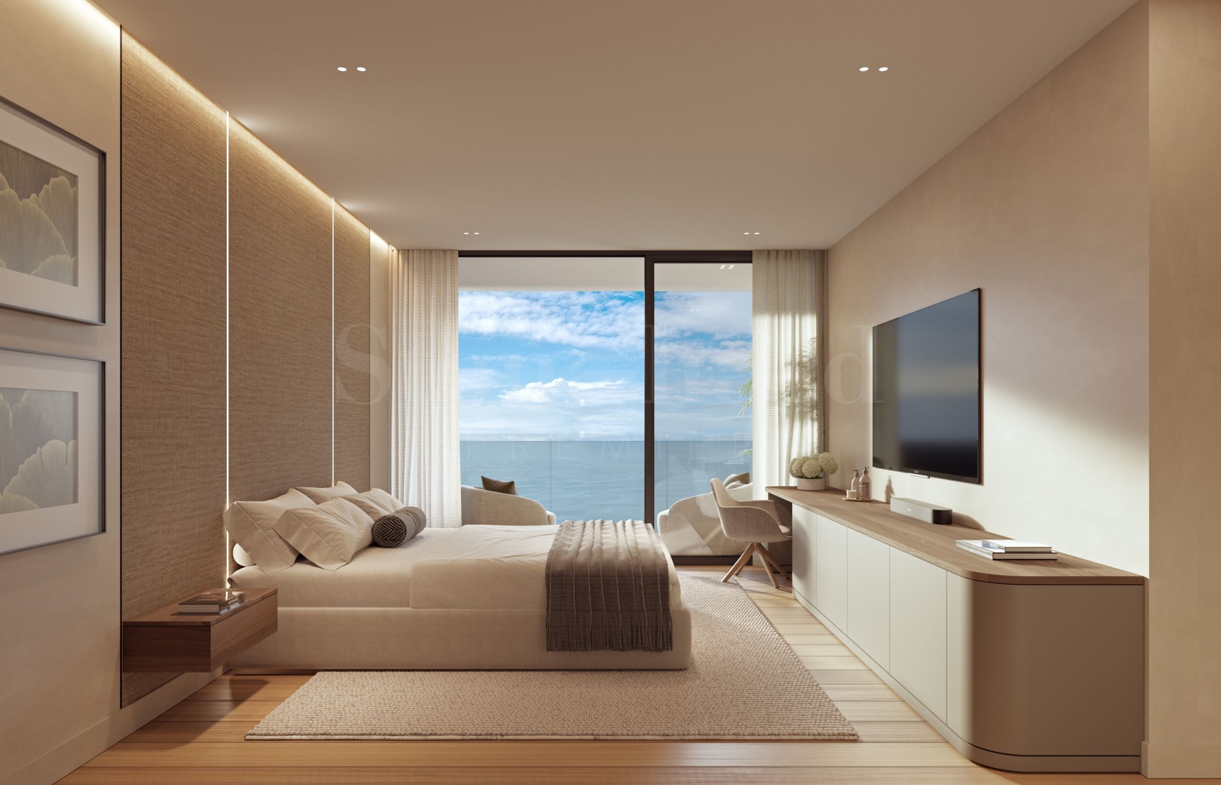 Квартира расположена на 9 этаже здания и имеет общую площадь 98 кв. м, из которых 93 кв. м отведены под внутреннюю часть и 5 кв. м – на внешнюю. Высокие потолки и панорамные окна словно рамы, позволяющие любоваться невероятными морскими пейзажами каждый день. Планировка квартиры чрезвычайно удобная и функциональная: просторная гостиная открытой планировки, совмещенная с кухней-столовой, главная спальня с ванной комнатой и гардеробной, вторая спальня с ванной комнатой, гостевой туалет и балкон.