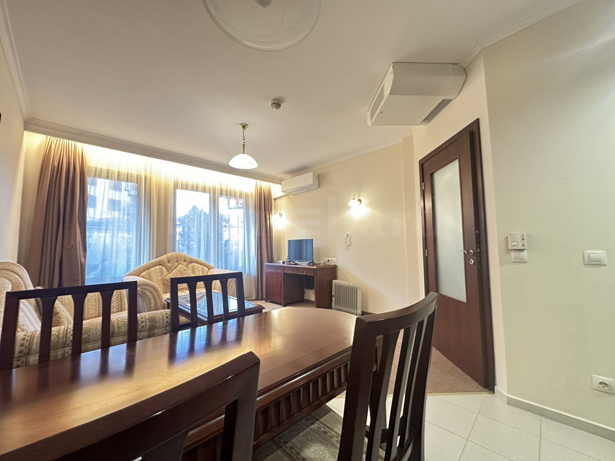 • Гостиная с диваном, журнальным столиком, обеденным столом со стульями;