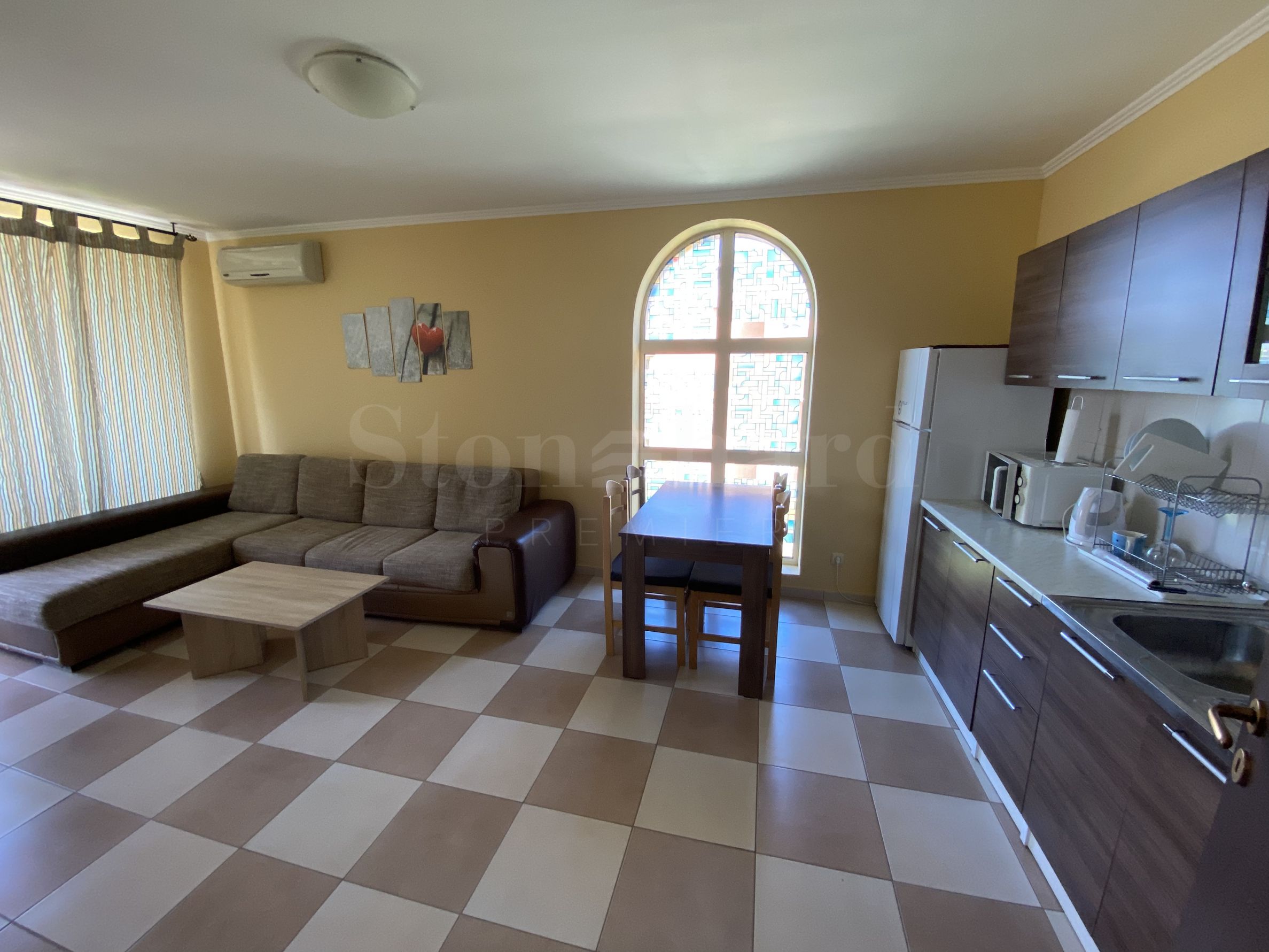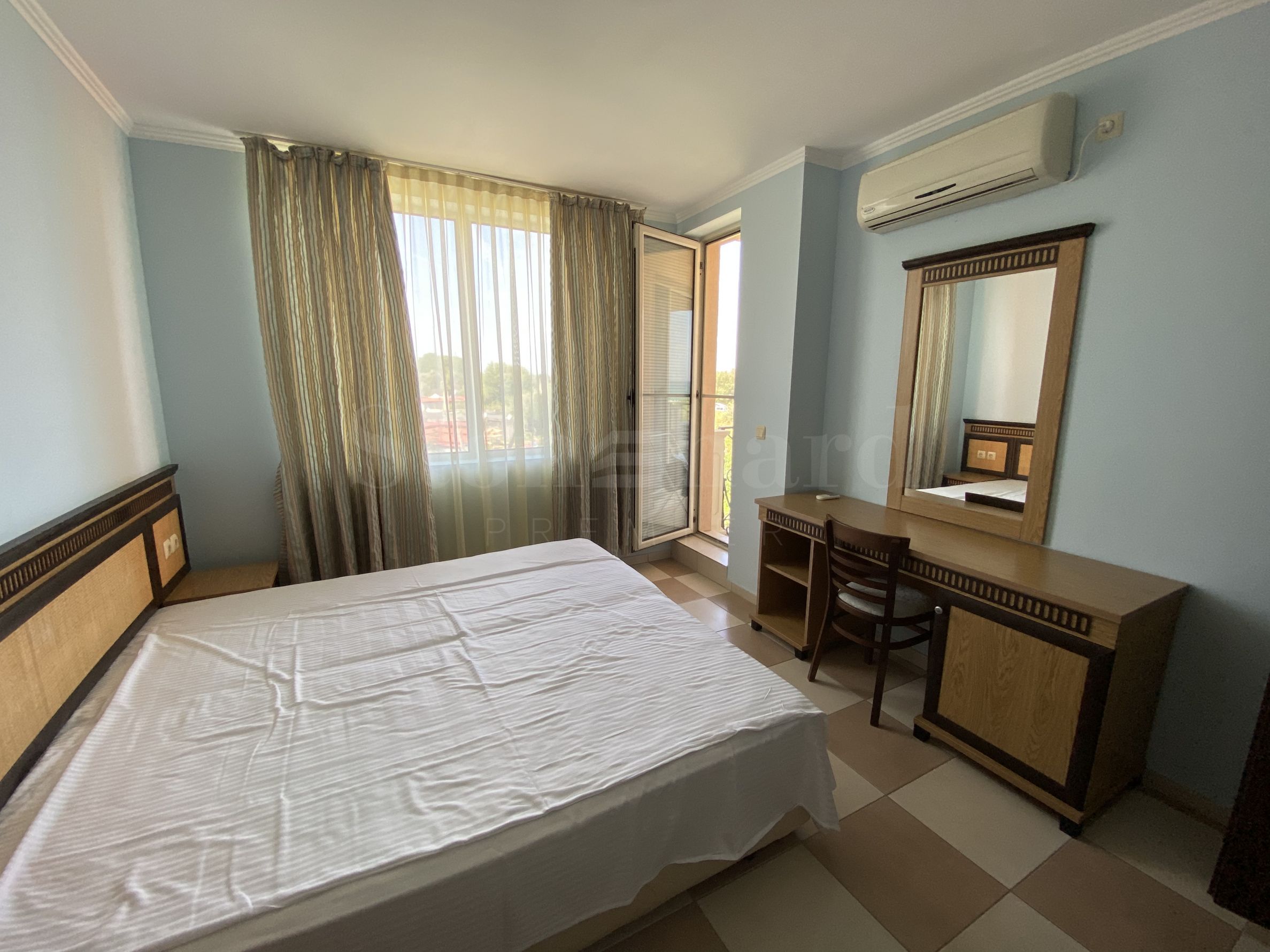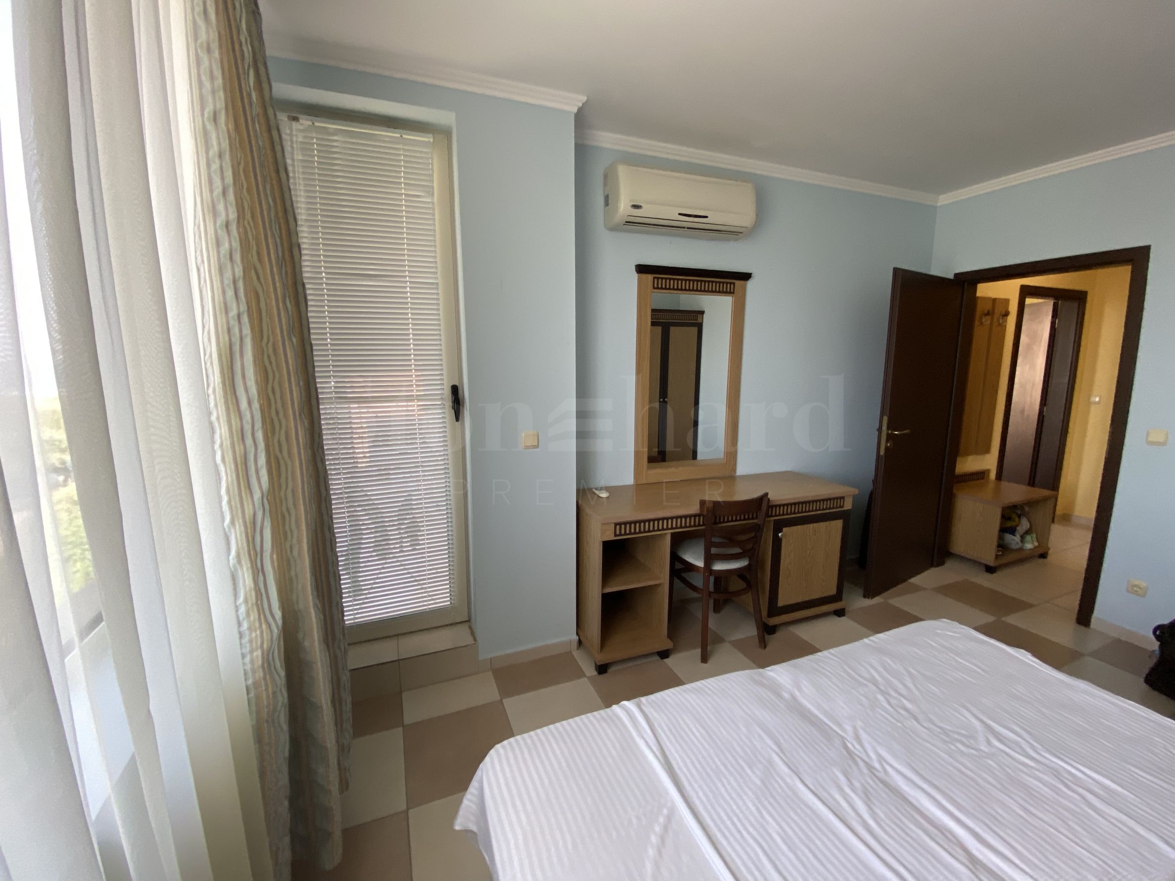 Недвижимость расположена на 3-м этаже и имеет боковой вид на море. Является частью элитного благоустроенного комплекса, расположенного рядом с заливом и пляжем "Золотая Рыбка", район Градина, с удобным доступом с главной дороги Бургас-Созополь. До Созополя всего 5 минут на машине.