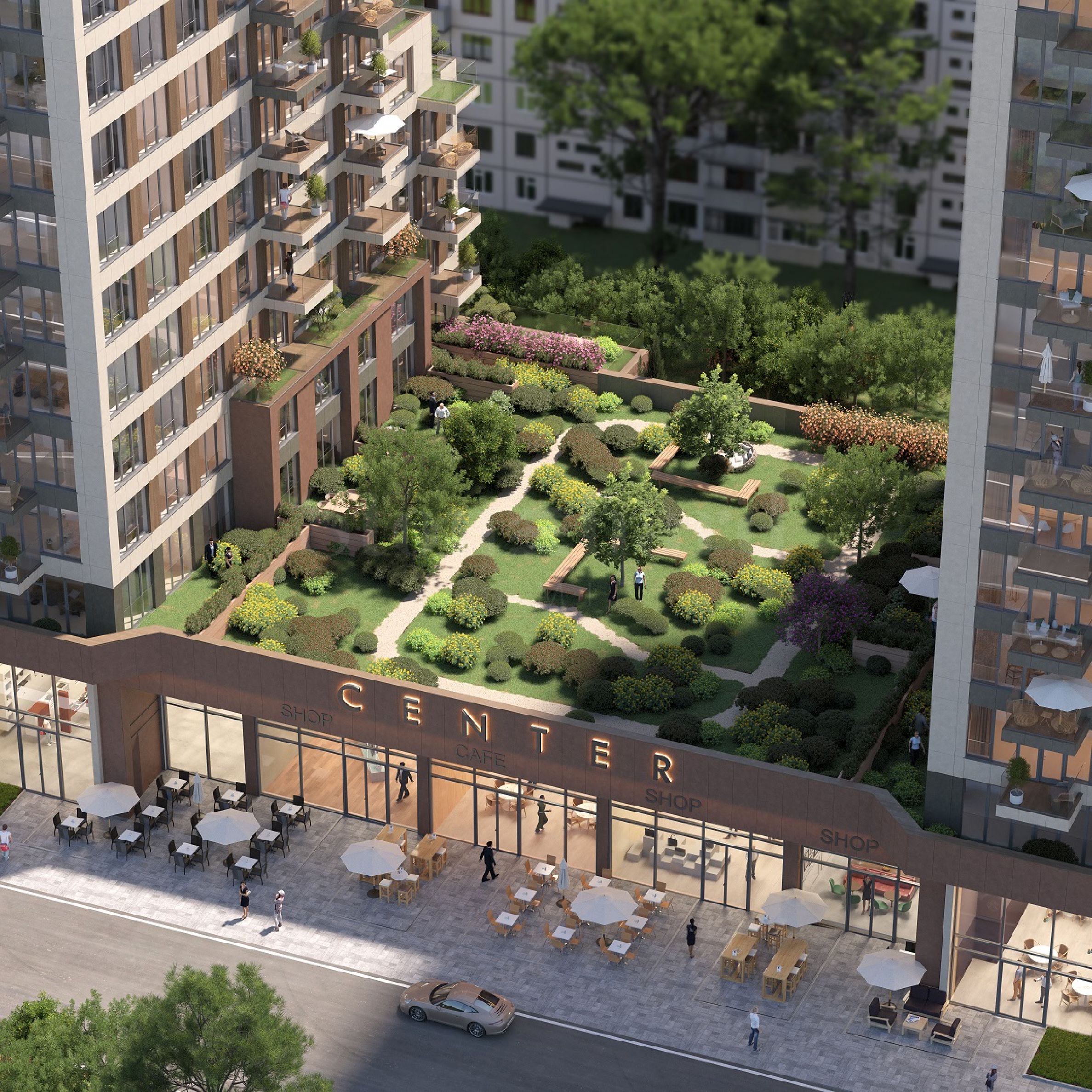В комплексе есть апартаменты с озелененными балконами, которые будут расположены на верхних этажах.