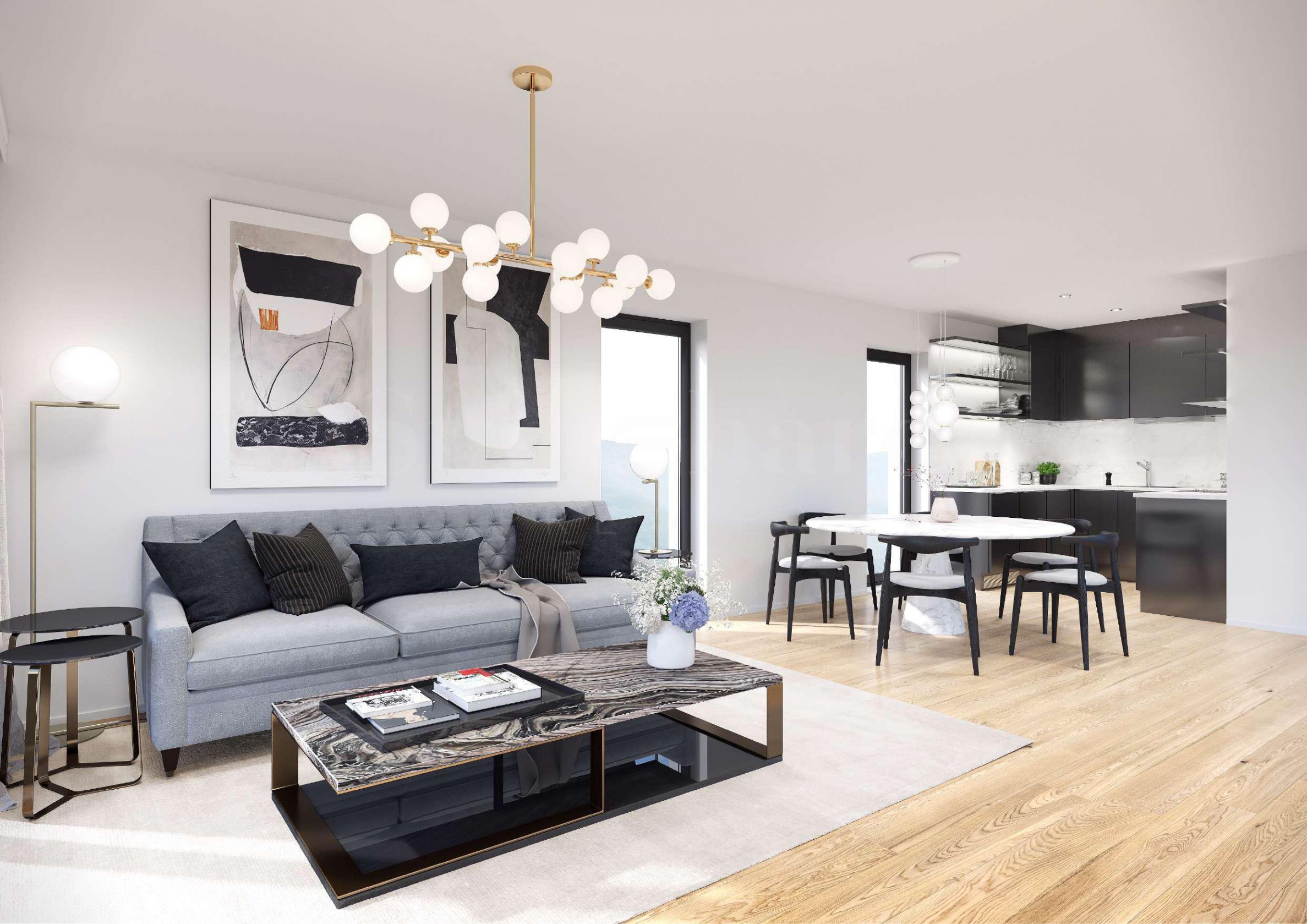 Квартиры разных типов в новом доме с элегантной современной архитектурой в районе Горубляне