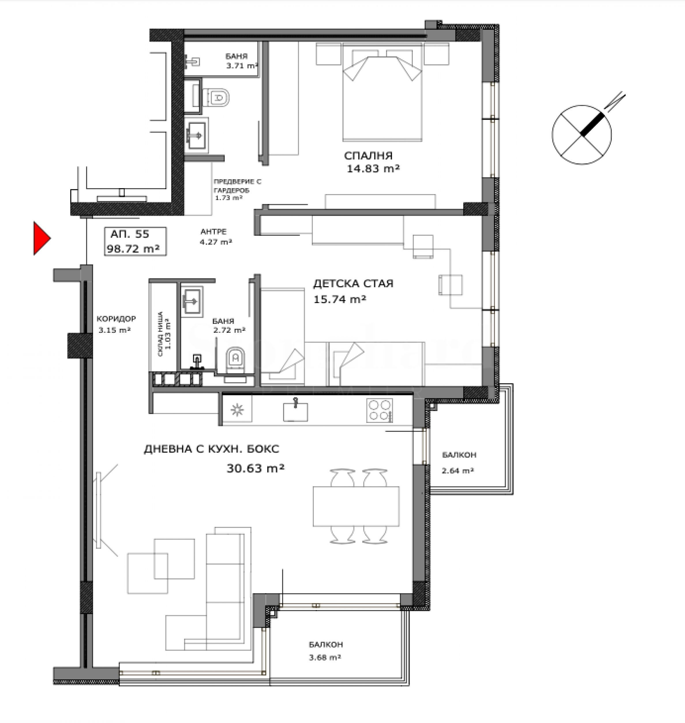 Трехкомнатная квартира с видом на Витошу на бул. «Царь Борис III»