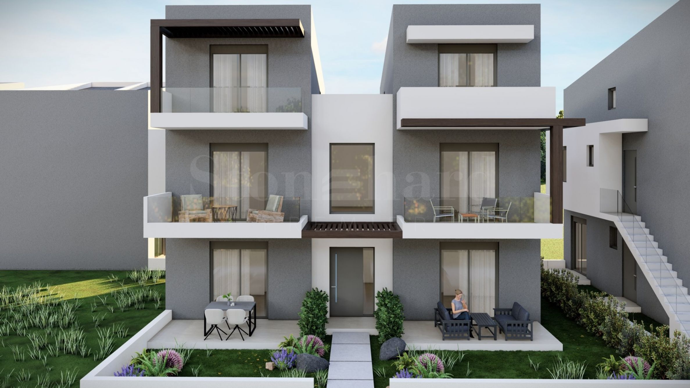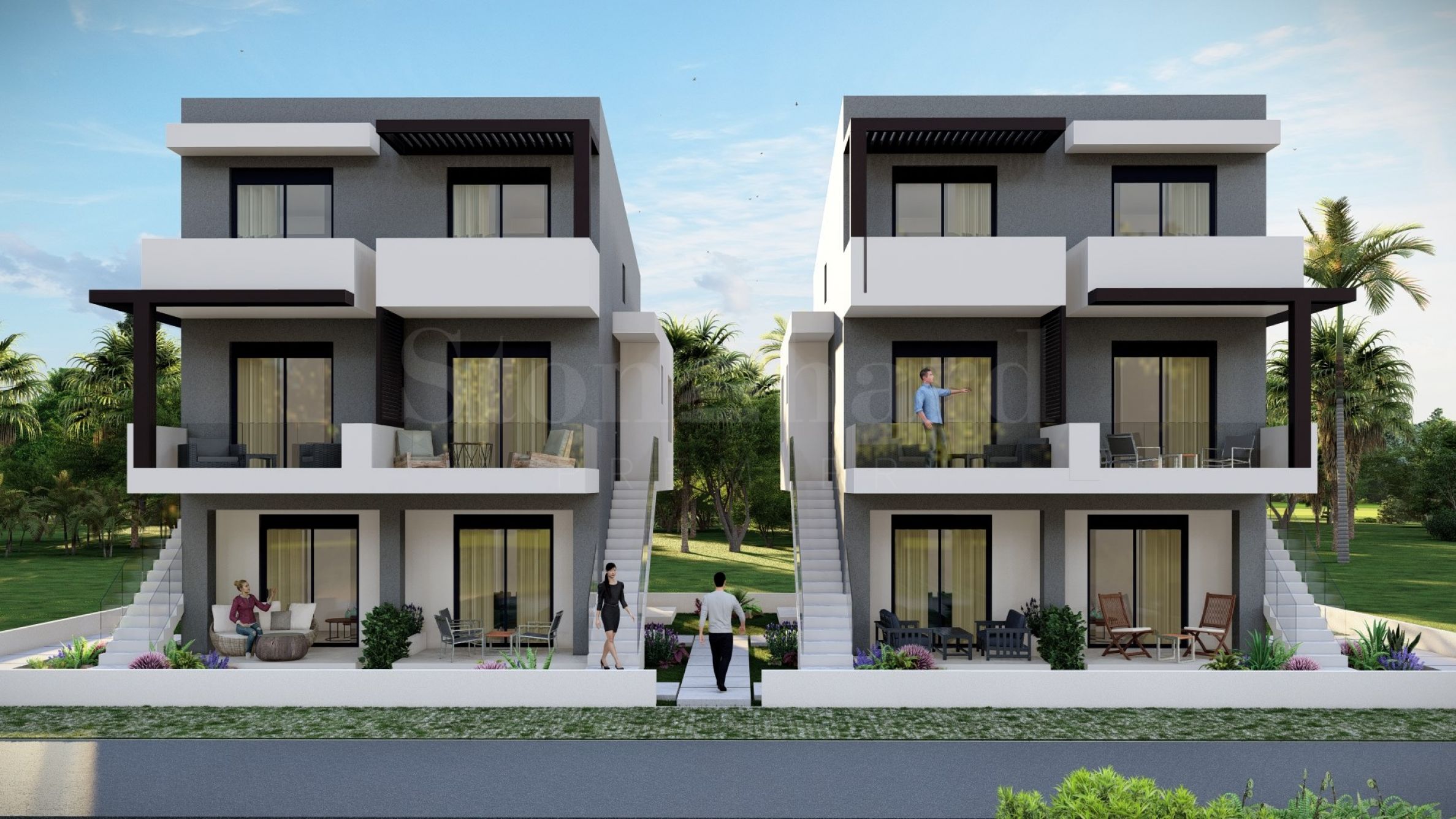 Комплекс состоит из двух зданий, в которых в общей сложности расположено 16 квартир с современным дизайном и функциональными архитектурными решениями. Площадь предлагаемых квартир варьируется от 55,22 кв. м до 60,44 кв. м, доступ к ним осуществляется по внешней лестнице, индивидуальной для каждой квартиры.