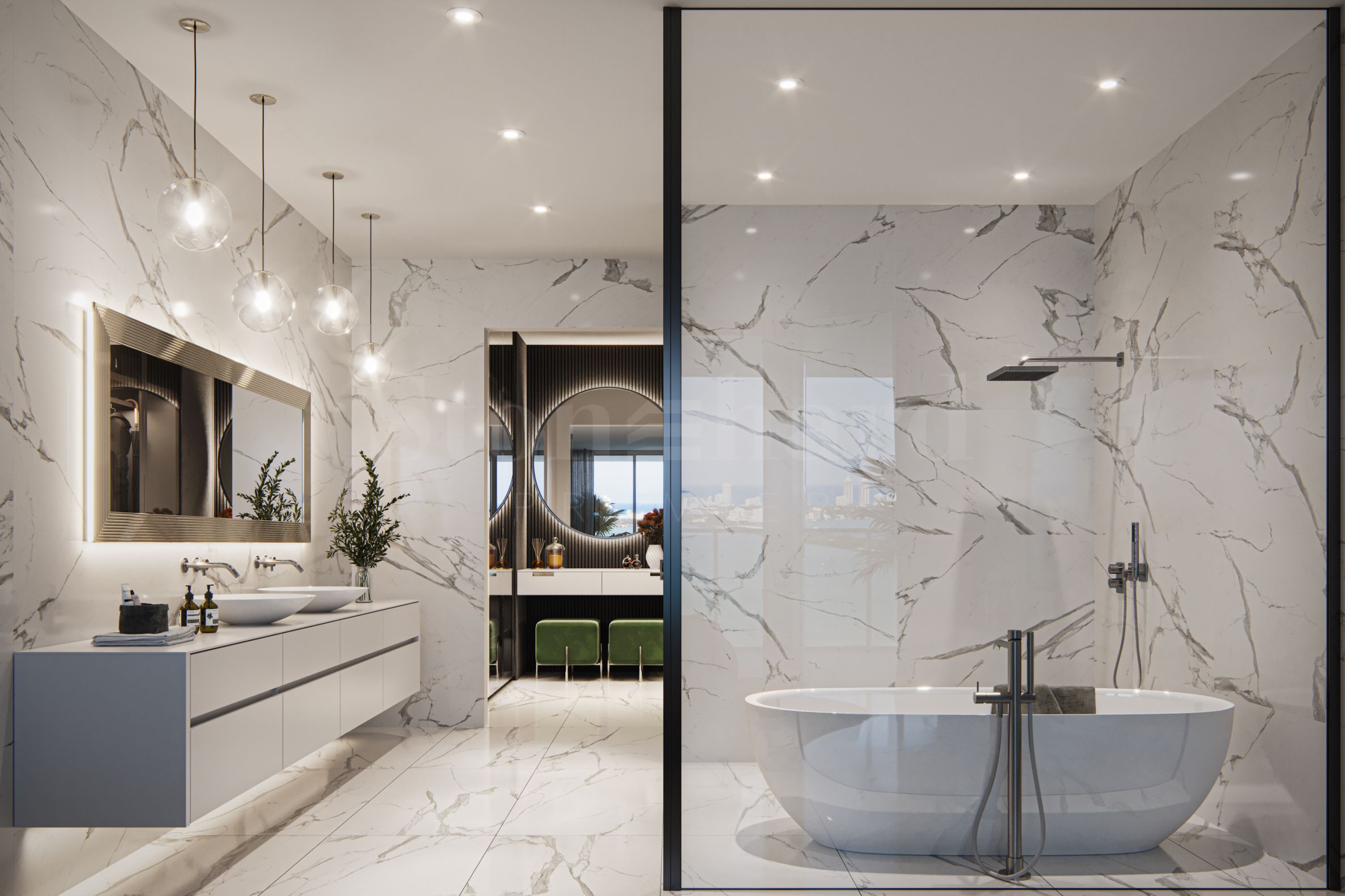 Квартиры, в которых насчитывается от 1 до 5 спален, спроектированы с акцентом на простор и естественное освещение. Большие панорамные окна не только открывают захватывающие виды, но и дополняют элегантный и динамичный фасад здания.