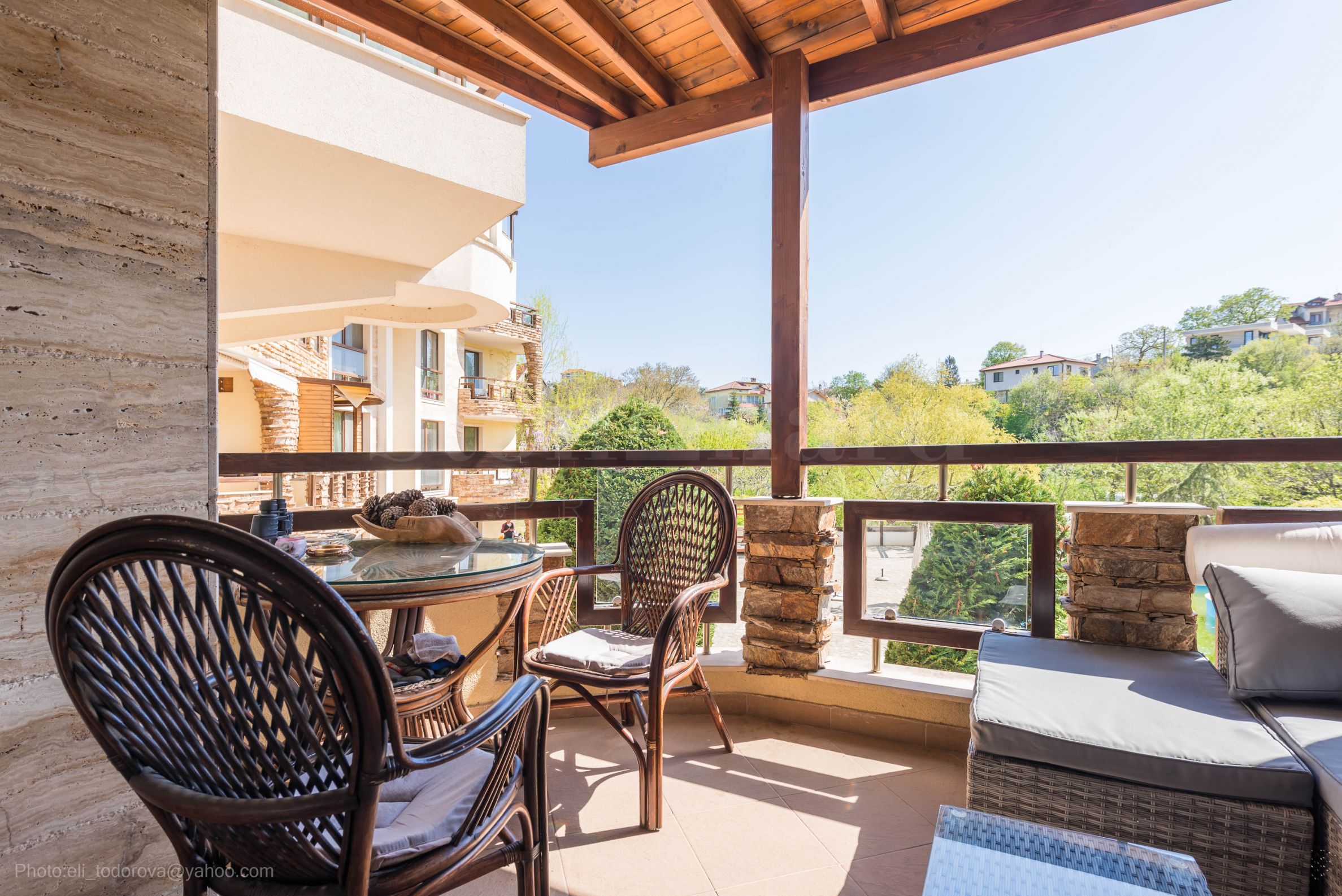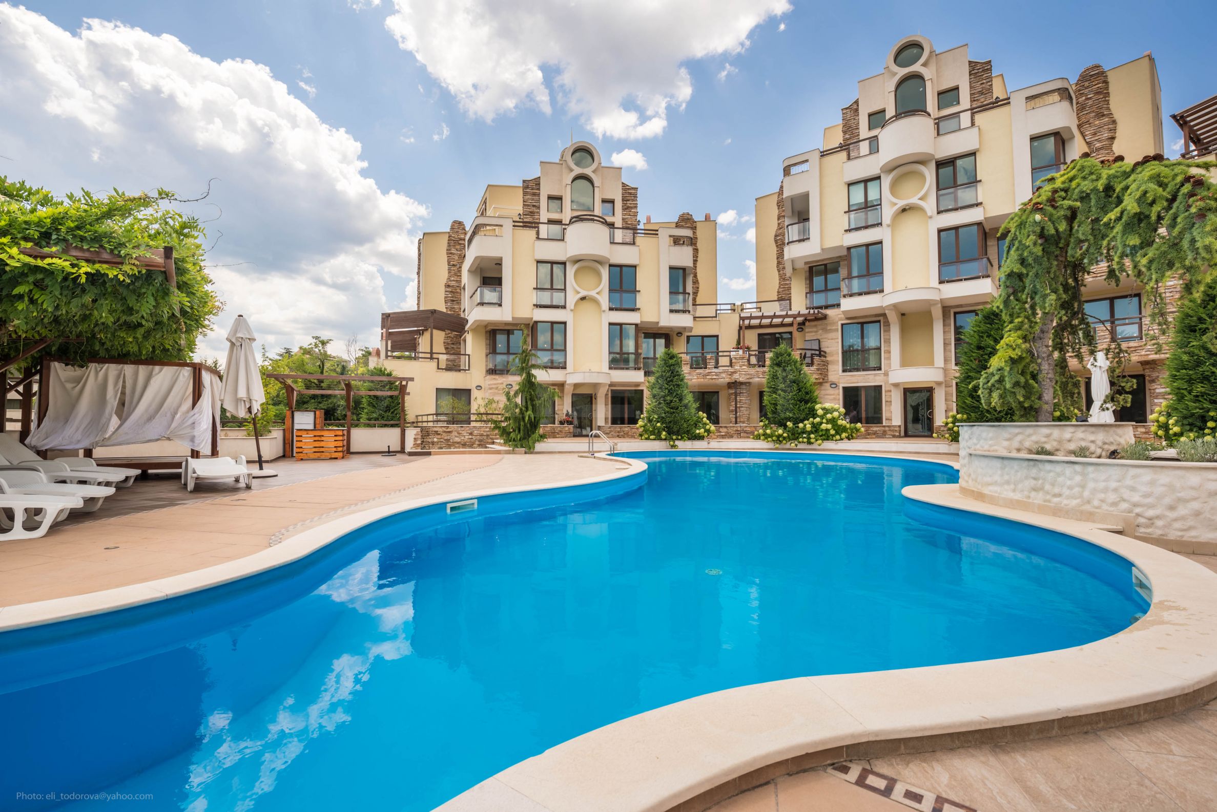 естественный лес, разделенный ручьем. Также дополнительным преимуществом для будущих владельцев является управление и обслуживание комплекса, стоимость которого составляет 1200 левов в год. Сюда также входит контроль доступа и безопасность, обслуживание парка и бассейнов, обслуживание мест общего пользования, а также парковочных мест.