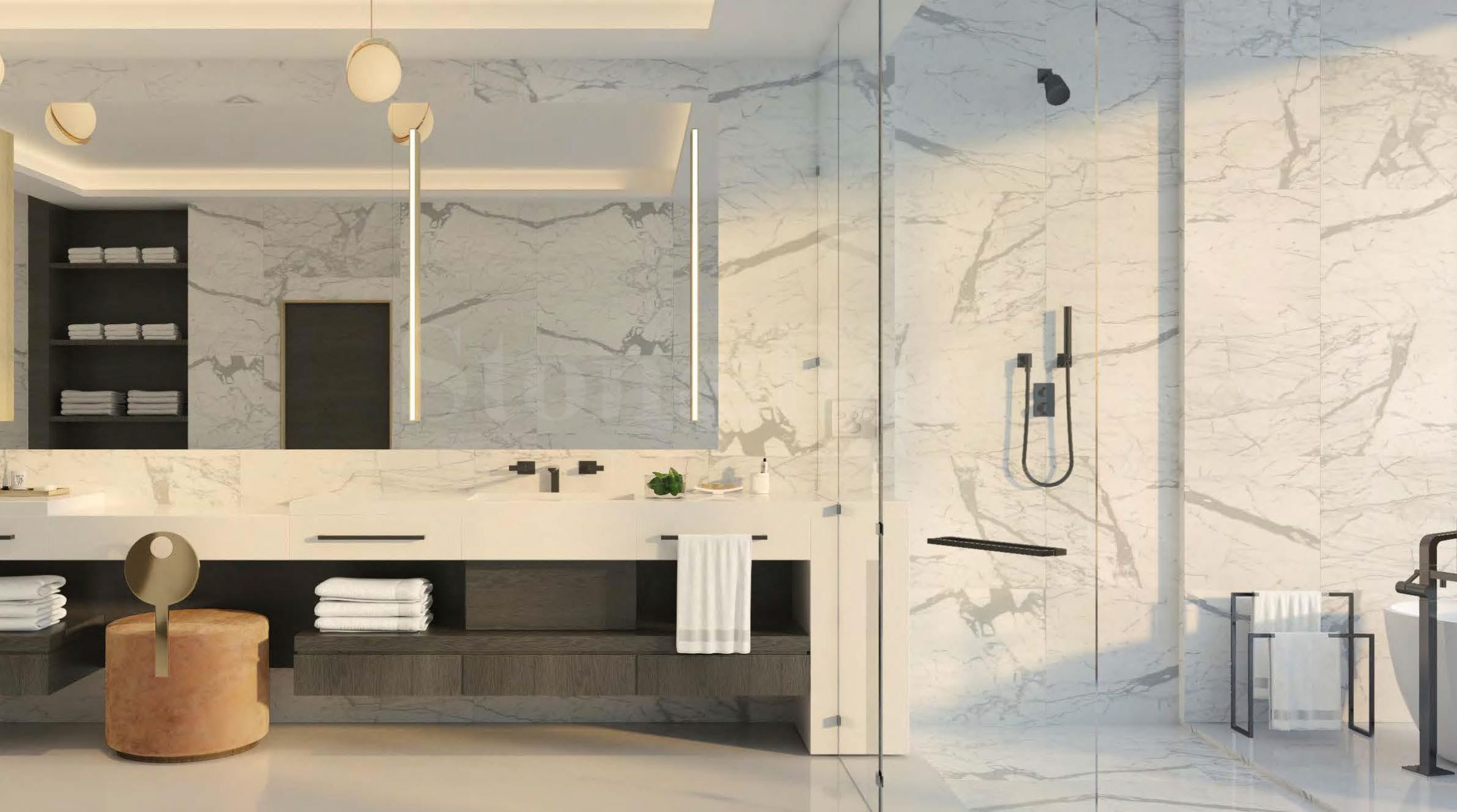 Кухня, которую часто называют сердцем дома, спроектирована здесь с особым вниманием — она сочетает в себе эстетику и функциональность, чтобы превратить приготовление пищи в радостное занятие. Дизайн интерьера выполнила компания BAMO, а реализация была доверена итальянскому бренду Italkraft, известному своей точностью и изысканным стилем. Кухни будут оснащены техникой Sub-Zero и Wolf — брендов, которые символизируют передовые технологии и надежность в мире встраиваемой техники.