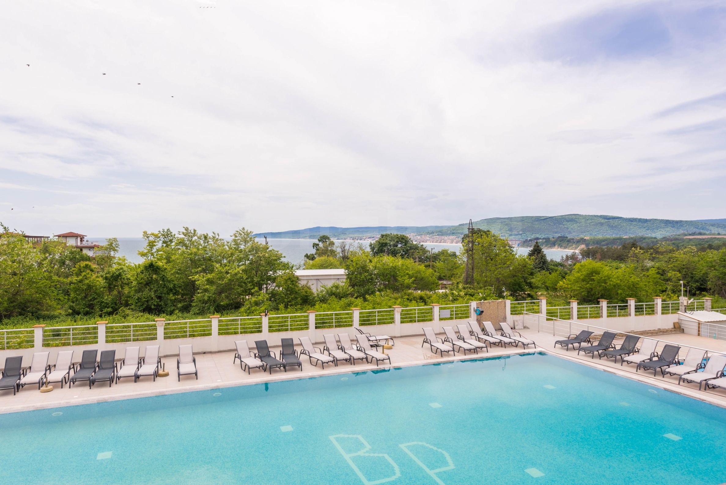 большая терраса с местом для отдыха и прекрасным видом на море и бассейн. Удобства на территории: