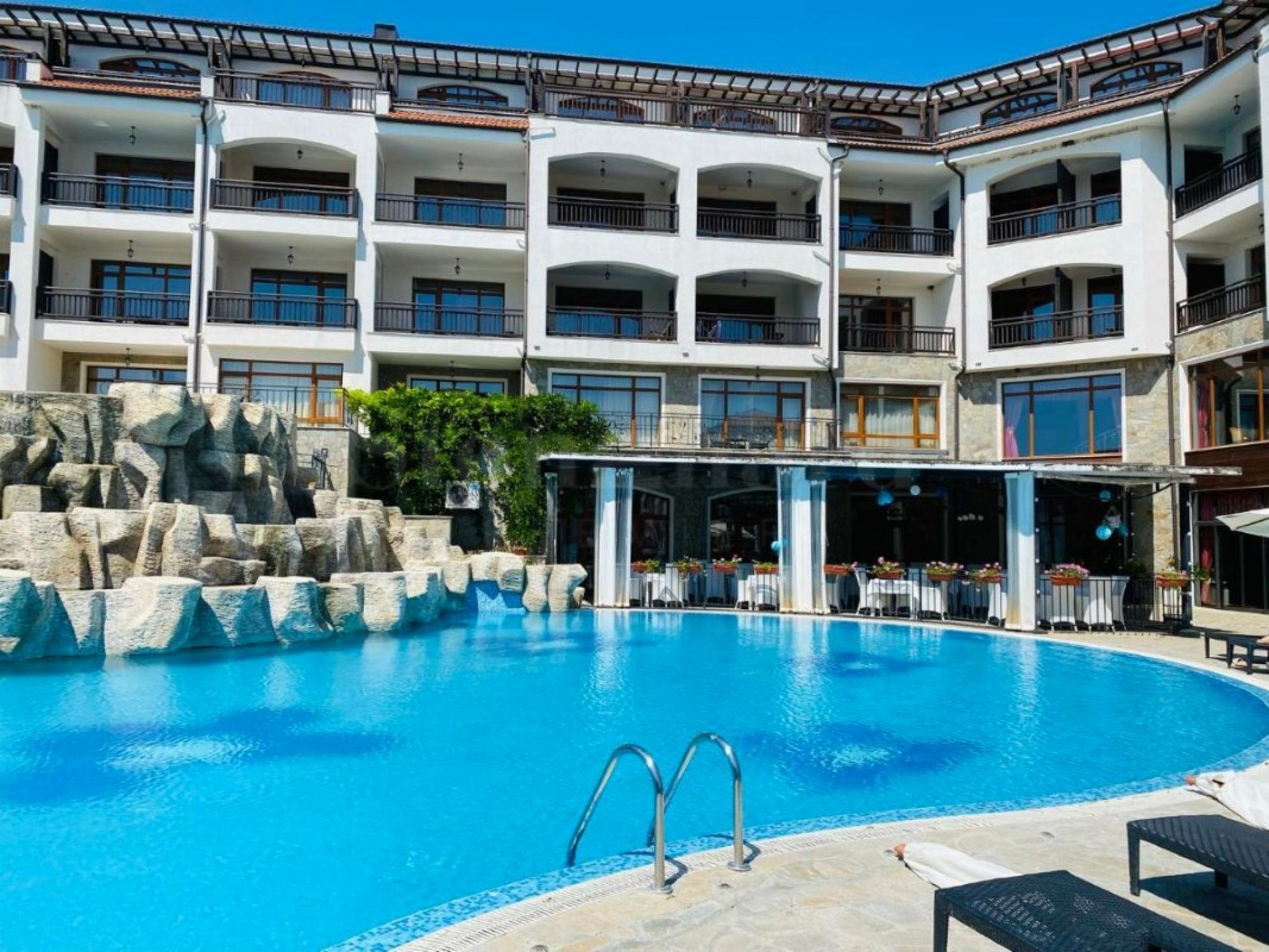 открытая благоустроенная парковка. Комплекс расположен на холме с потрясающим видом на море и Балканские горы.