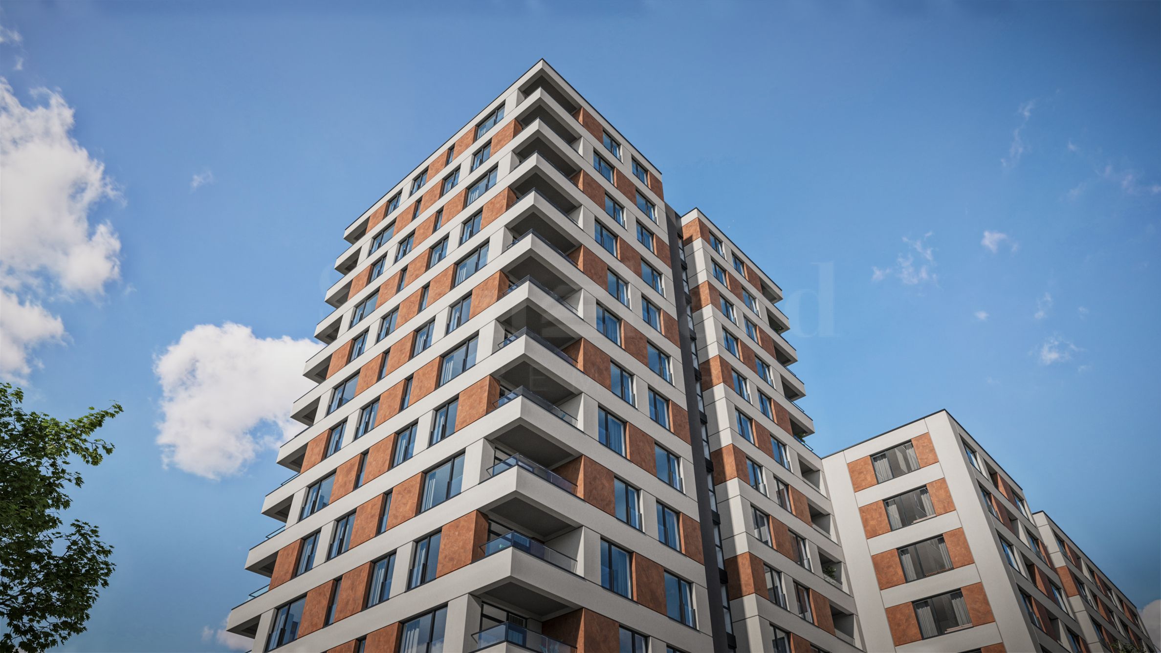 • Фасад выполнен из высококачественных материалов - вентилируемой керамической облицовки, теплоизоляции EPS и минеральной штукатурки, которые обеспечивают защиту и стильный вид.