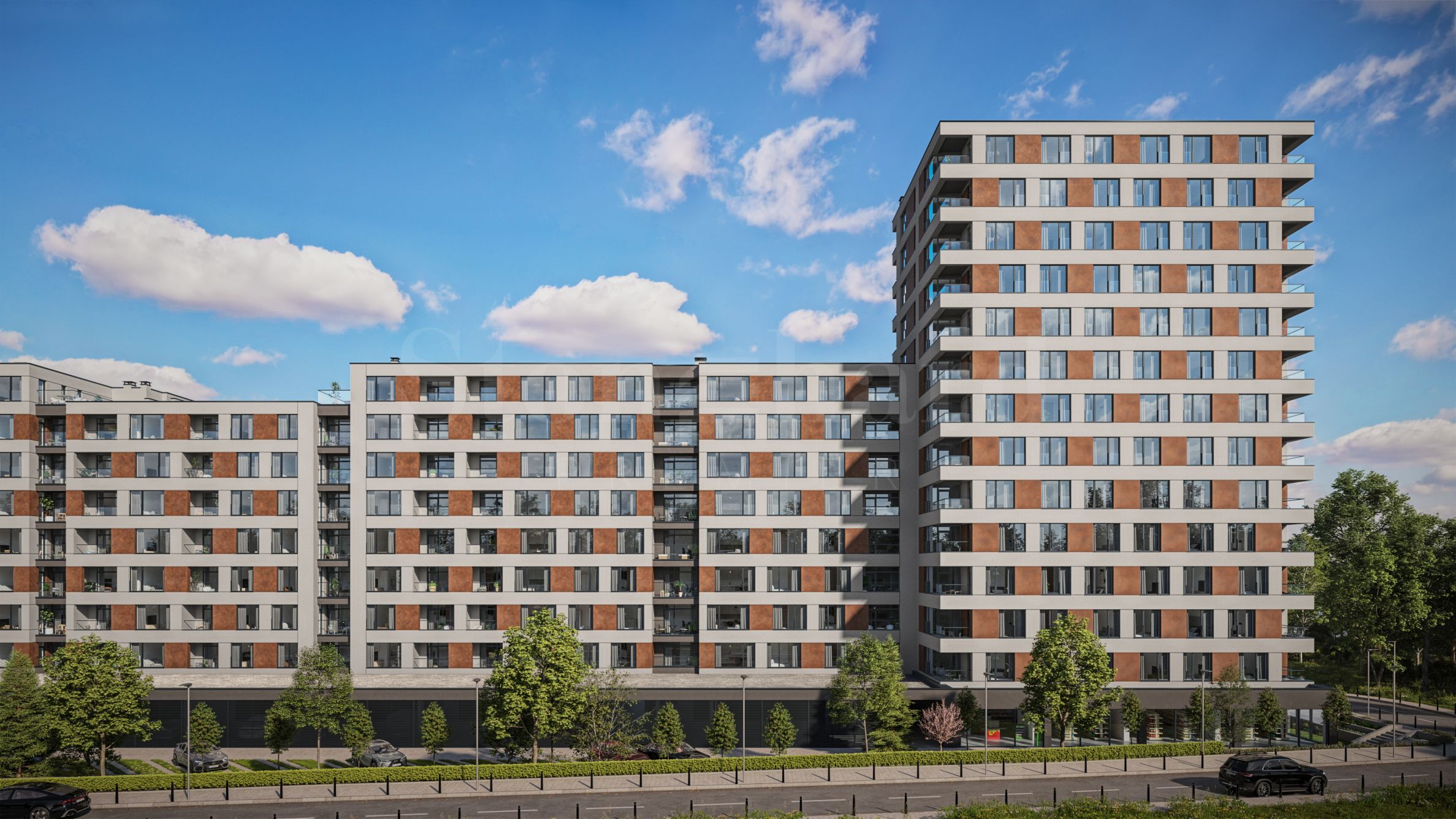 • Фасад выполнен из высококачественных материалов - вентилируемой керамической облицовки, теплоизоляции EPS и минеральной штукатурки, которые обеспечивают защиту и стильный вид.