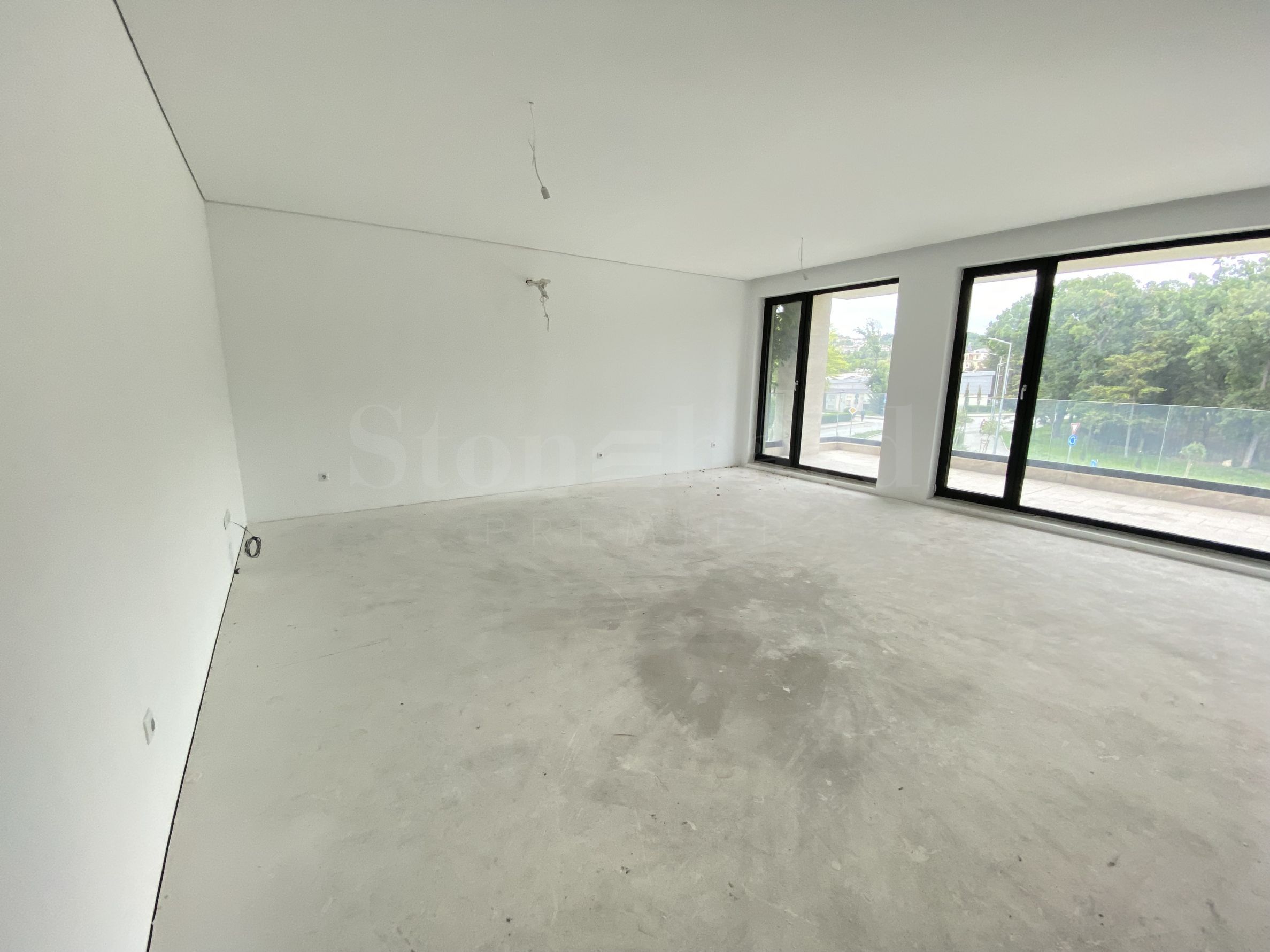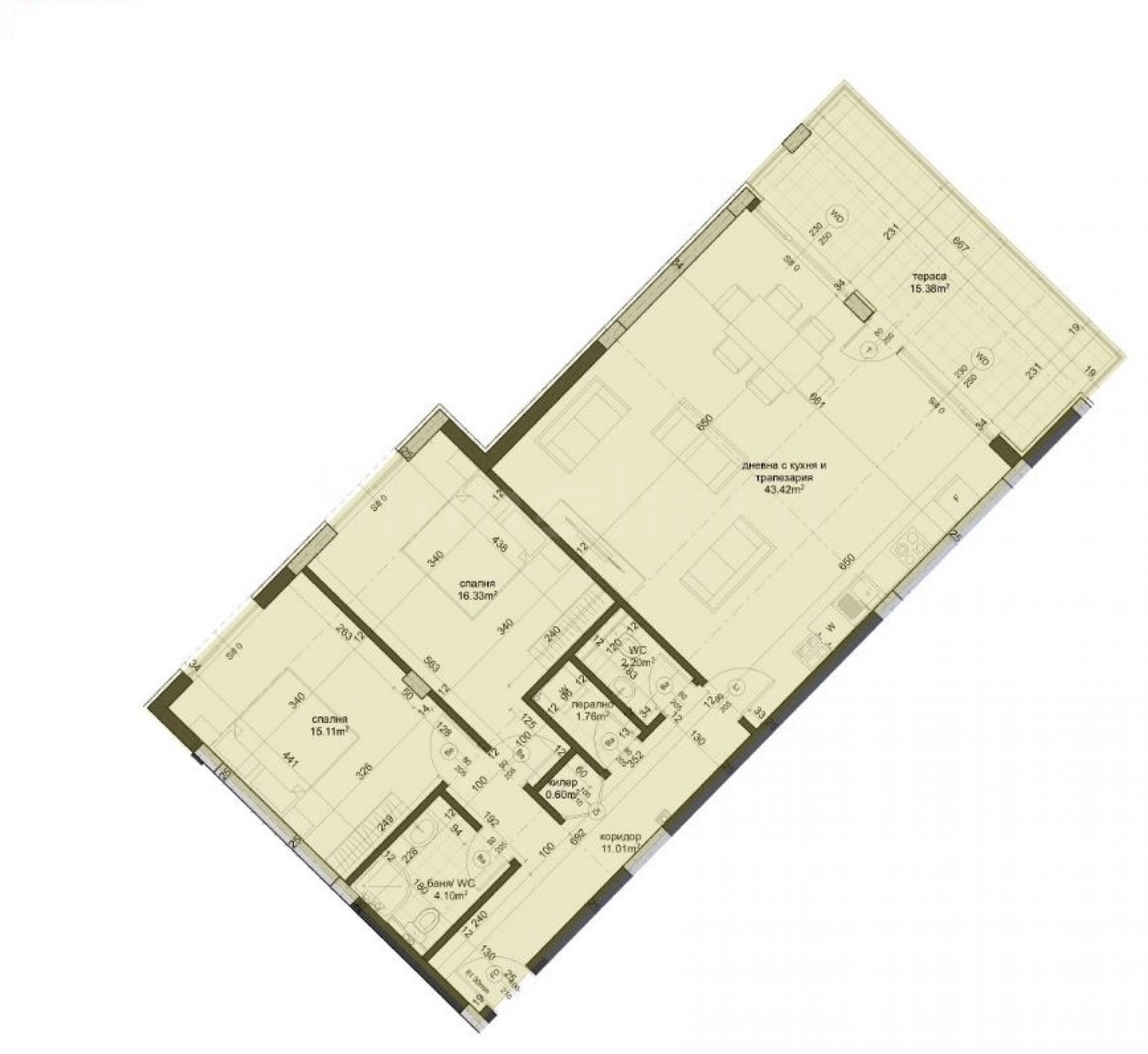 большая терраса, идеально подходящая для утреннего кофе или вечернего отдыха. Квартира предлагается в степени завершенности, соответствующей болгарским строительным нормам, что дает вам свободу реализовать интерьер по своему вкусу.