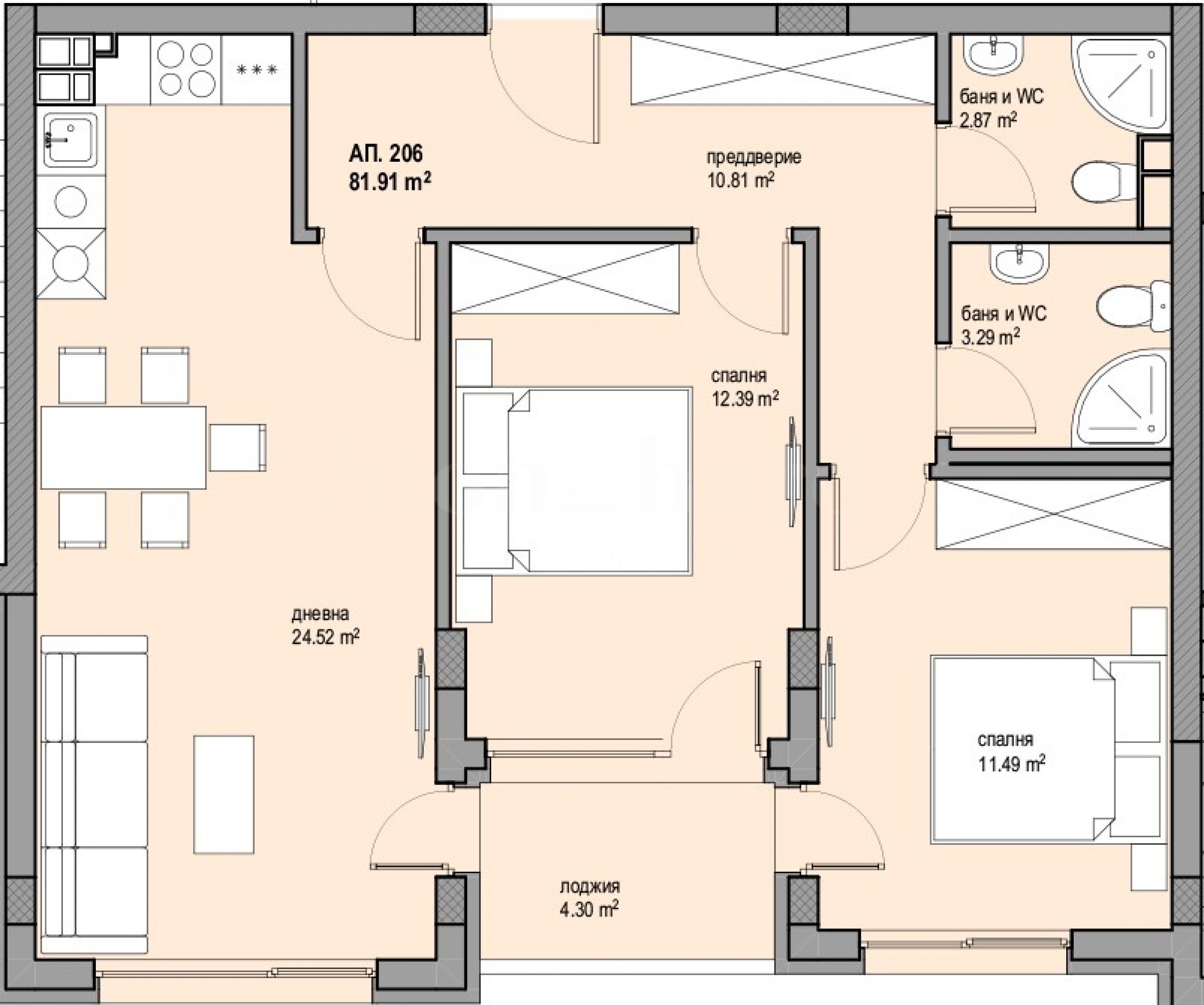 Квартиры в здании сдаются в следующей степени готовности согласно болгарским строительным нормам: