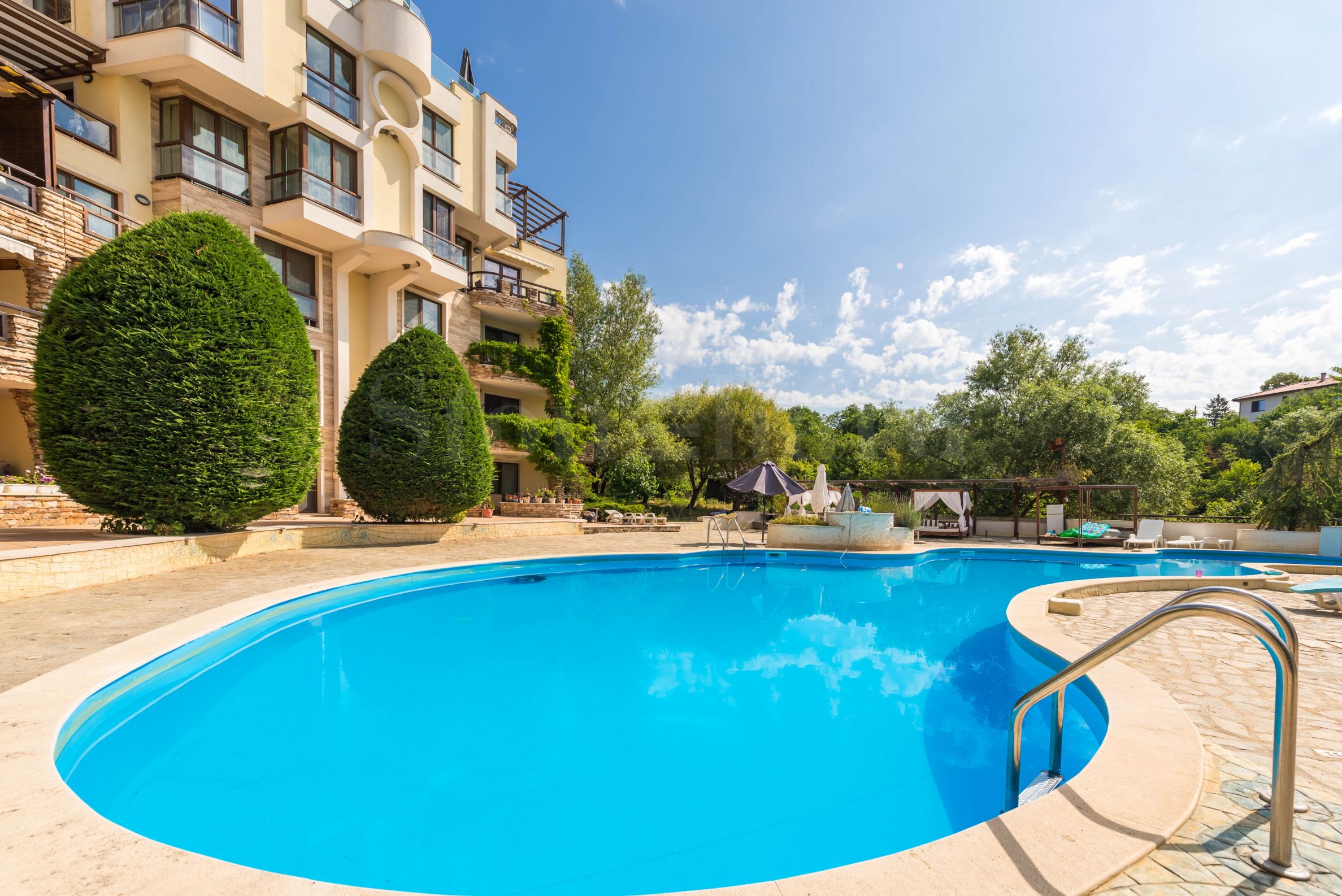• частный открытый бассейн для отдыха в теплые дни;
