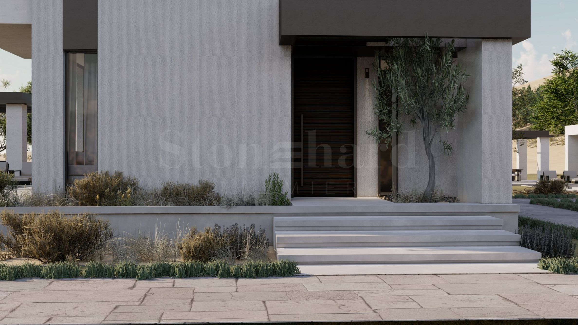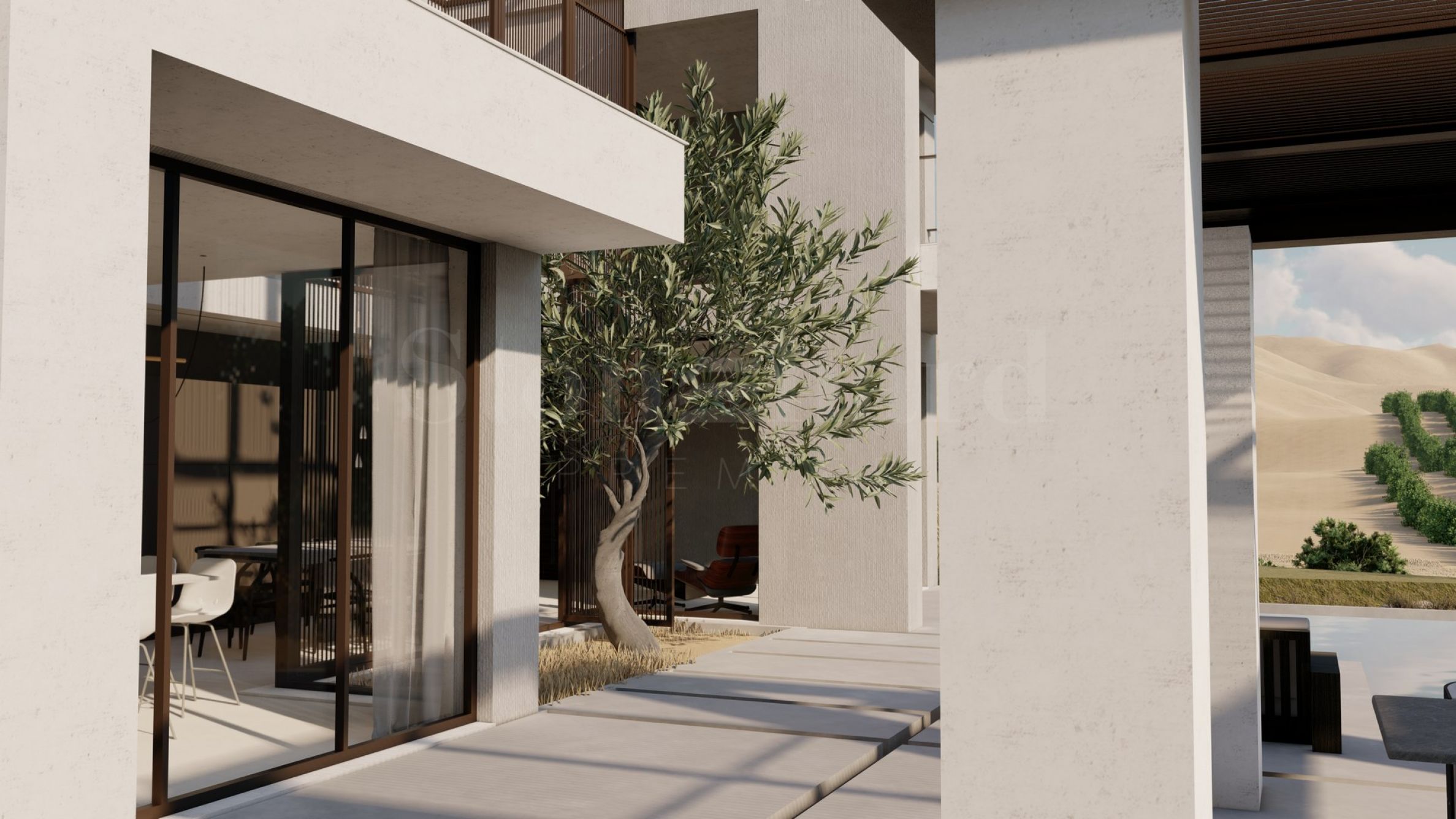 Роскошный комплекс расположен в уединённом и тихом месте, что гарантирует жильцам полный релакс и тишину. Он состоит из четырёх отдельных домов с современной архитектурой, отличающейся прямыми, чистыми линиями и панорамными окнами, которые усиливают ощущение света, простора и свободы. В прилегающих двориках оборудованы перголы и зоны отдыха — идеальное место для умиротворённых мгновений под греческим солнцем.