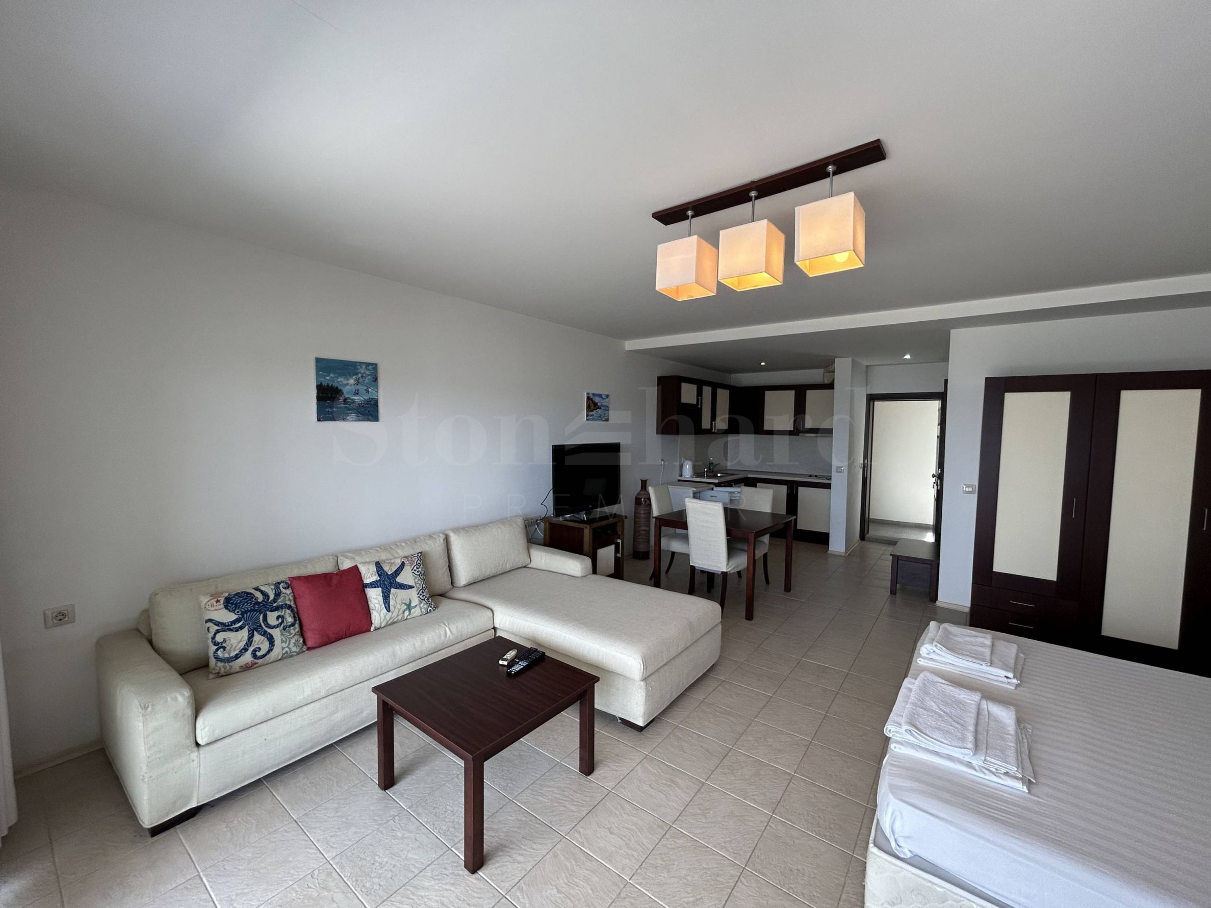 Меблированная студия с видом на море, 500 метров от пляжа Каваци, Созополь.