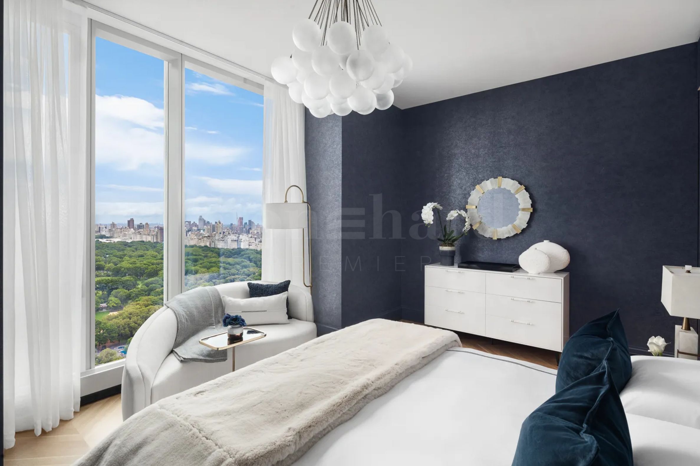 Среди ограниченного выбора квартир представляем вам четырёхкомнатную квартиру площадью 246 кв. м, отличающуюся простором и светом. Высокие потолки и панорамные окна от пола до потолка открывают захватывающий вид на Центральный парк и панораму Нью-Йорка. Функциональная планировка включает в себя открытую гостиную с кухней и столовой, главную спальню с собственной ванной комнатой и гардеробной, а также две дополнительные спальни, каждая с собственной ванной комнатой. Также имеется отдельный гостевой туалет.