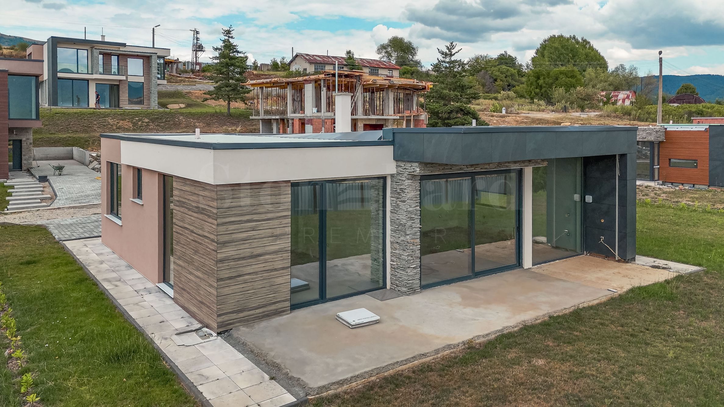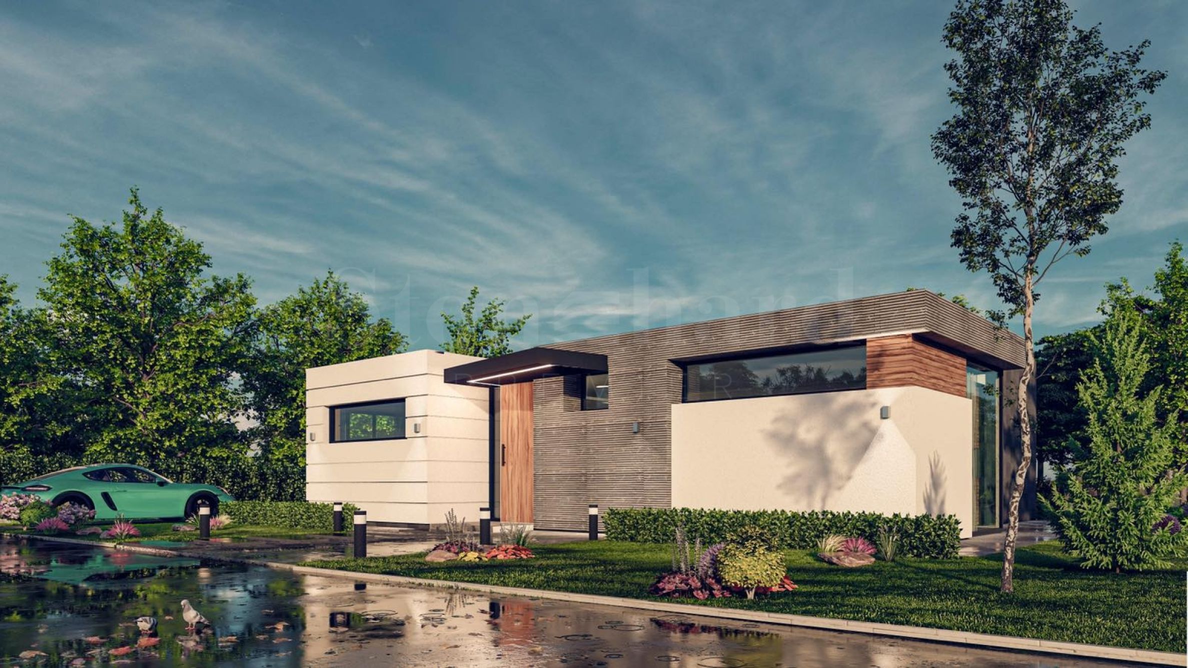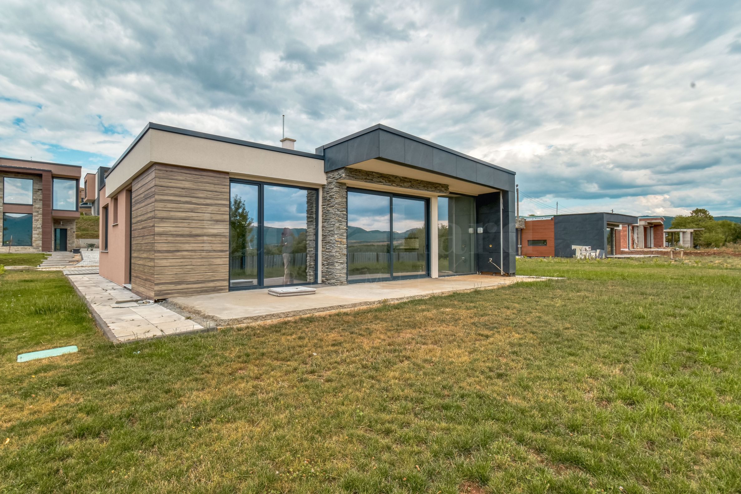 Архитектурный облик комплекса сочетает в себе чистые линии, натуральные материалы, такие как камень и дерево, и тщательно подобранные фасадные решения. Высококлассная теплоизоляция, тройные стеклопакеты Rehau Geneo, современные входные двери и надежные кровельные решения гарантируют долговечность и энергоэффективность. Отопление осуществляется тепловым насосом и теплым полом, внутренние помещения оштукатурены и оштукатурены, возможна отделка «под ключ» по индивидуальному проекту.