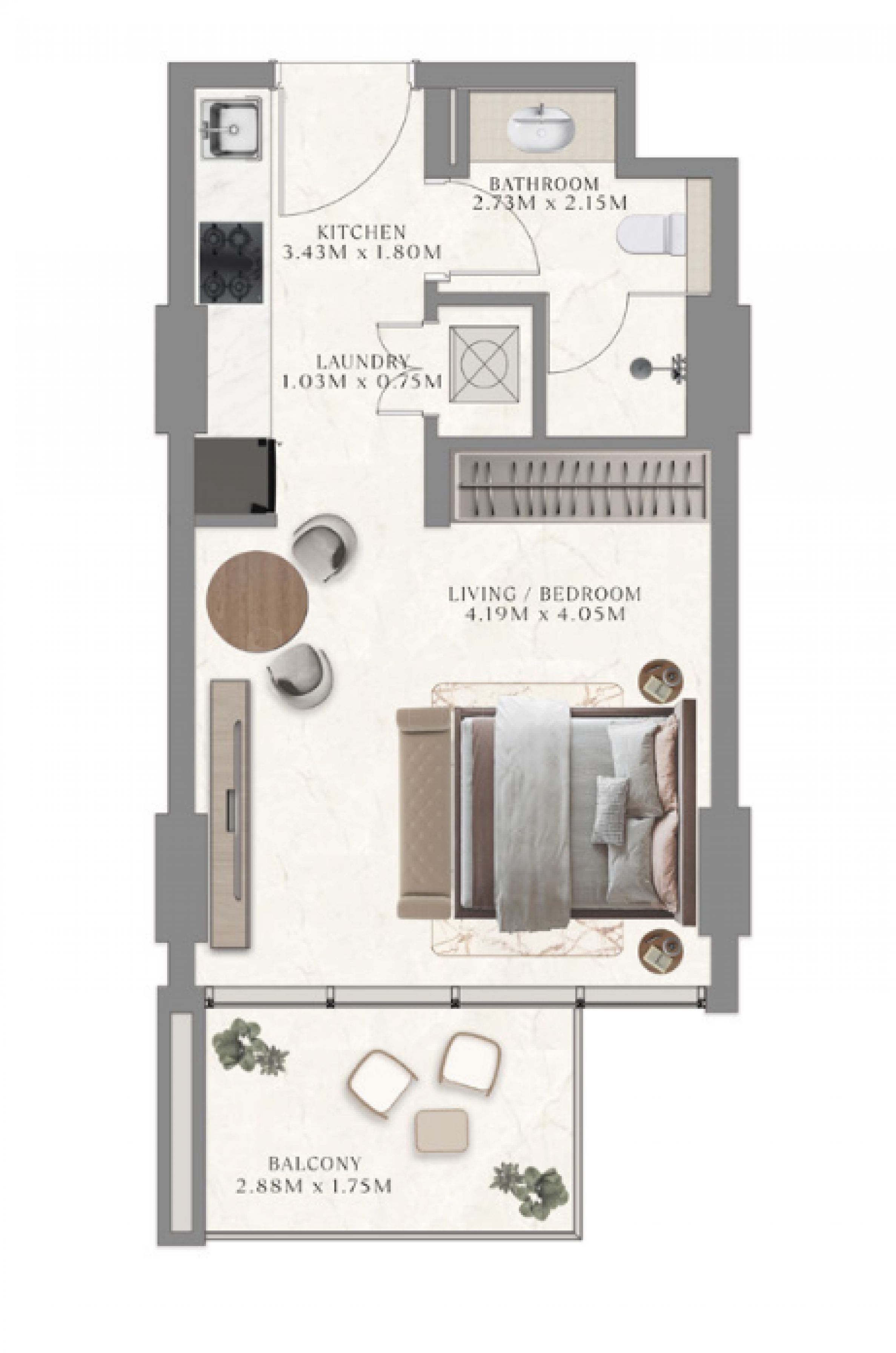 Комфортабельные студии и апартаменты в комплексе Inara by Imtiaz — современном здании в районе Dubai South.